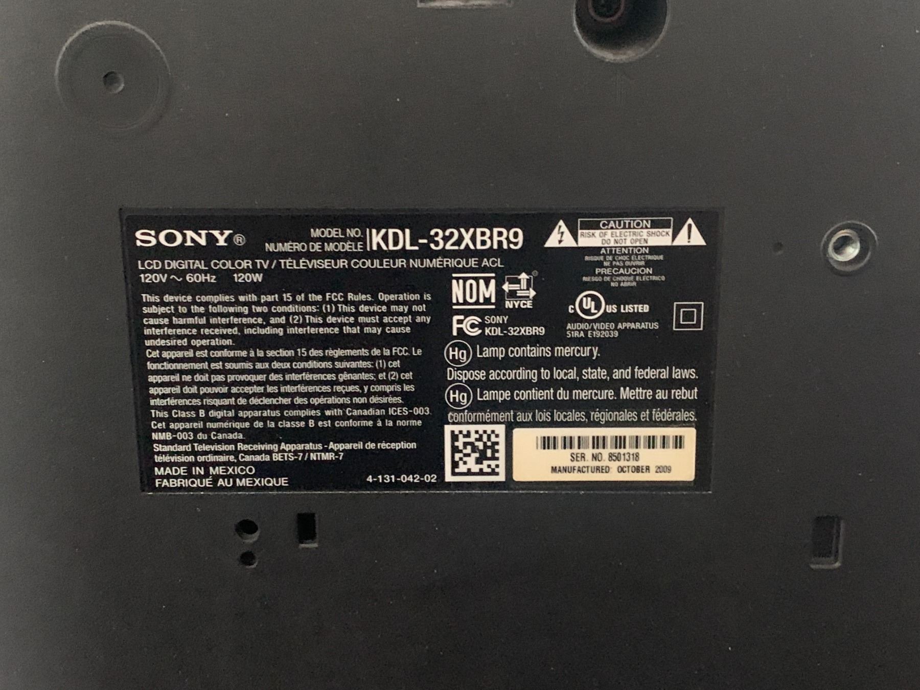 Sony 32" LCD TV (Model No. KDL-32XBR9) and Blu-Ray DVD Player