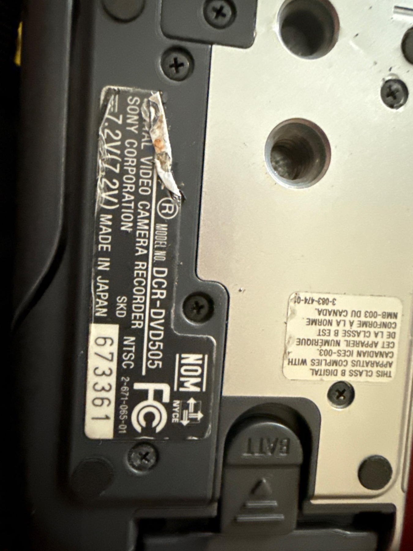 Sony Handycam Camcorder in Case, Model No. DCR-DVD505
