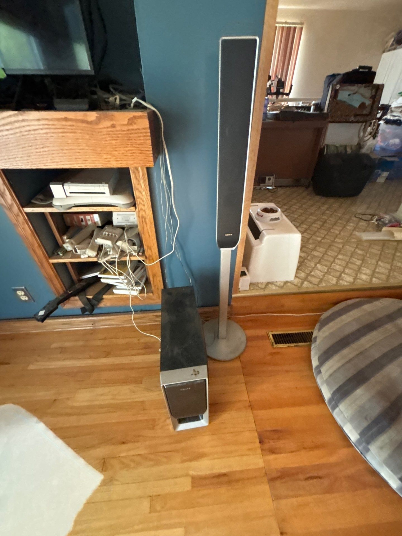 Sony surround sound system speakers two front two back one centre channel and one sub rear speakers are wireless great little system