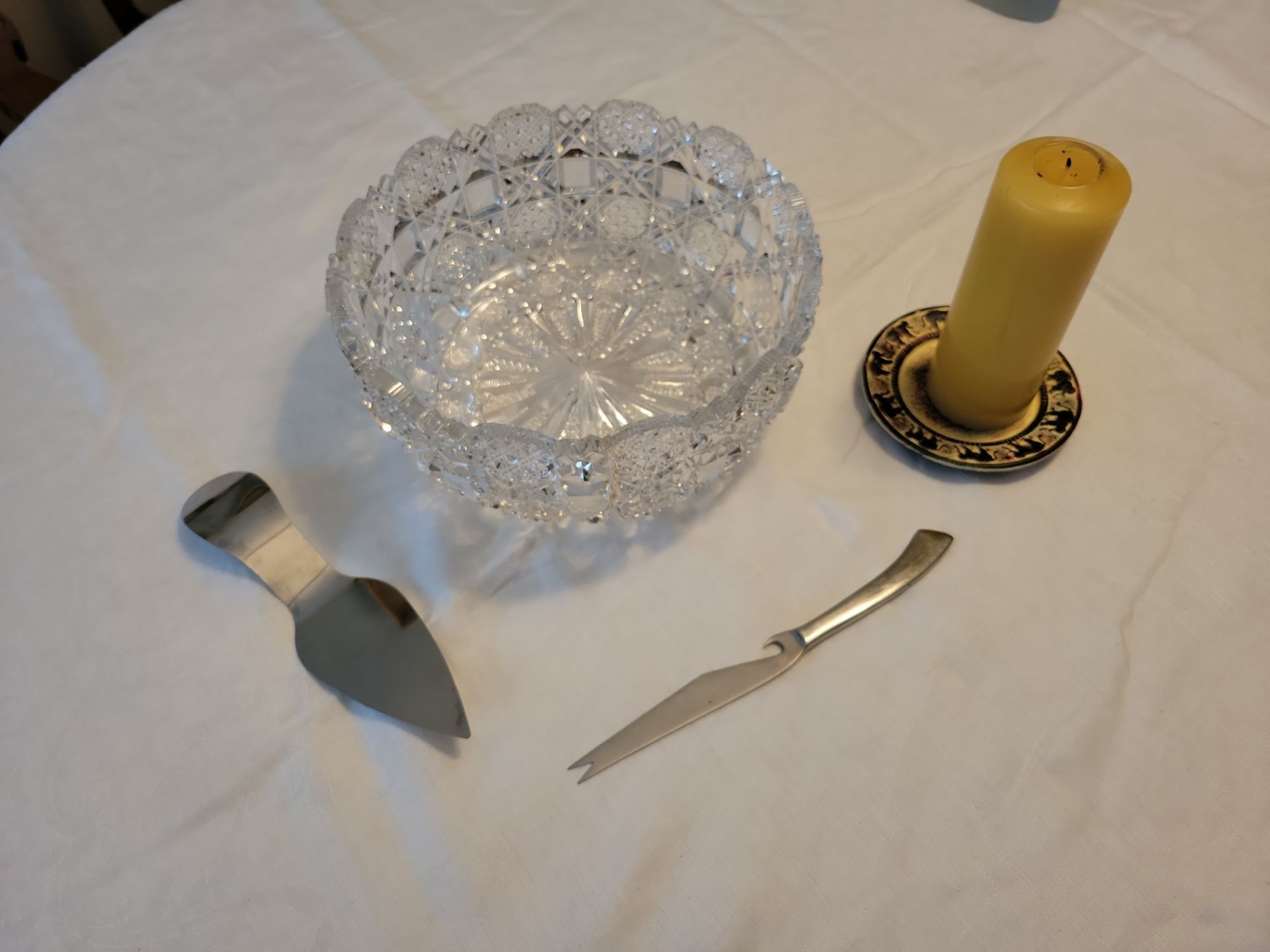 Special Occasion Serving Ware - Pin Wheel Crystal Bowl Gold Candle Ambience & More