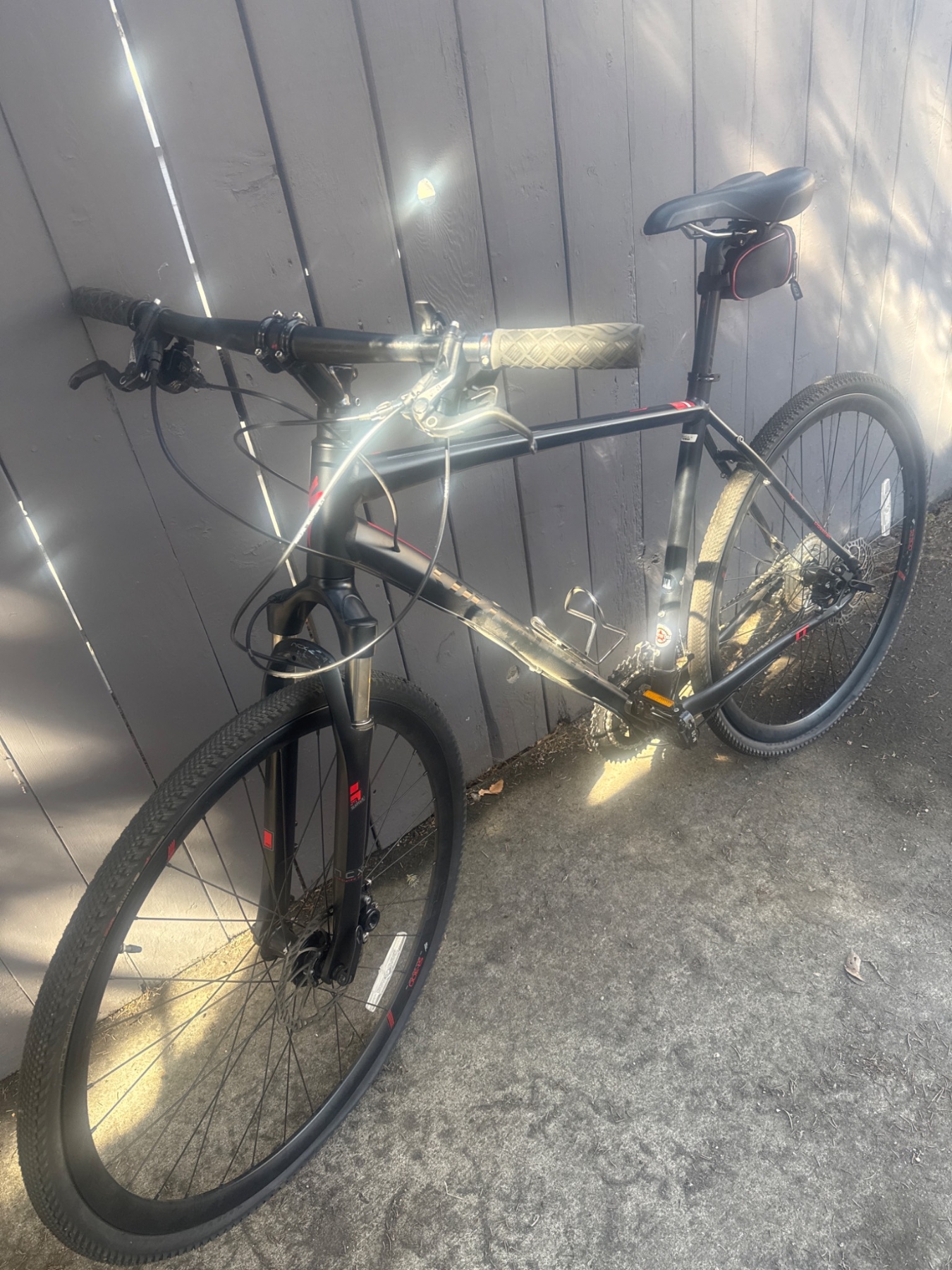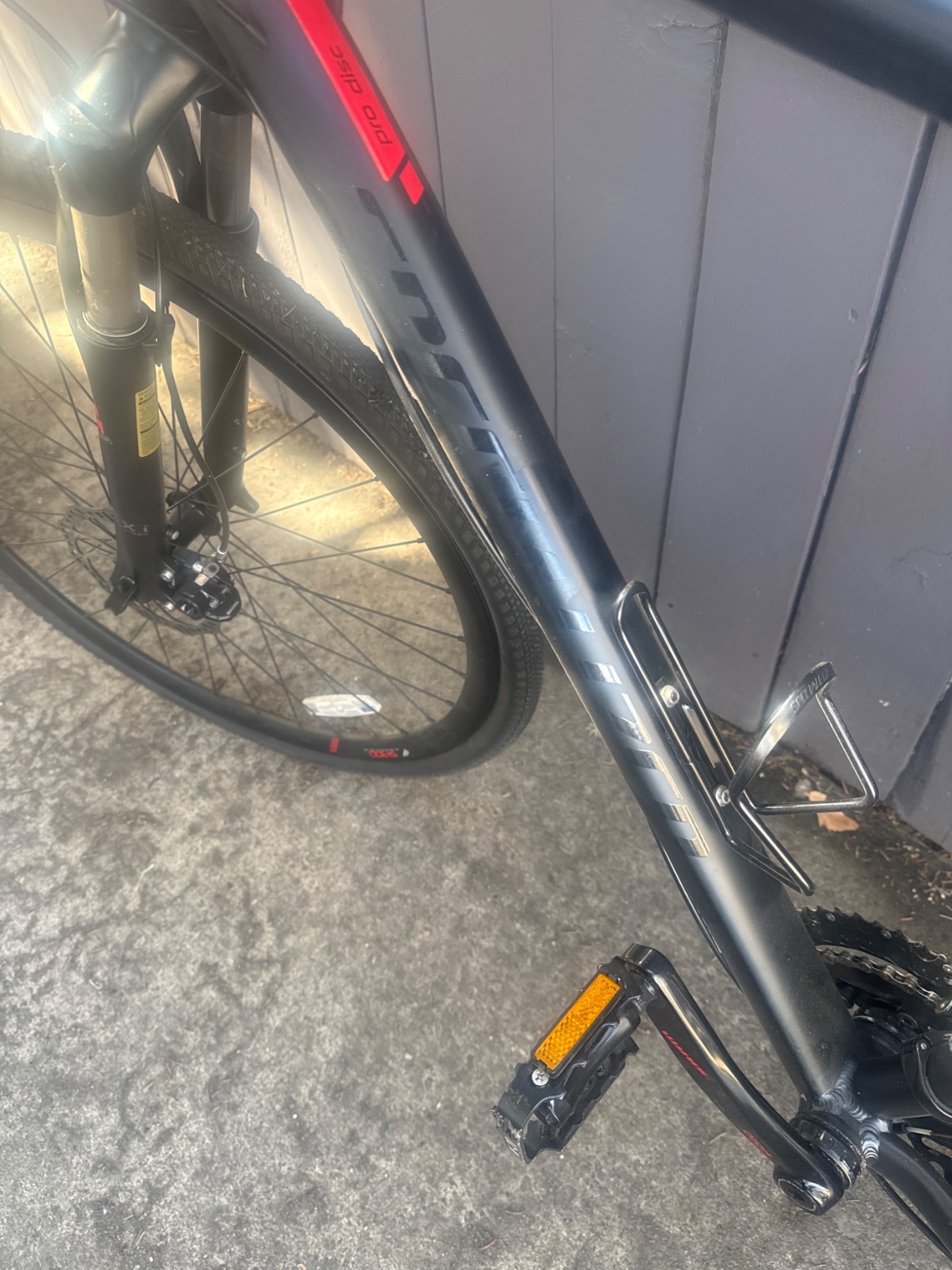Specialized CrossTrail XL Pro Disc hybrid bike, featuring a lightweight aluminum body, ideal for multiple terrains. Equipped with Body Geometry saddle and handlebar grips for enhanced comfort. This bike is brand new and includes hydraulic disc brakes, ergonomic pedals, and durable 700c tires. Comes with the original Specialized owner’s manual. Frame size: XL