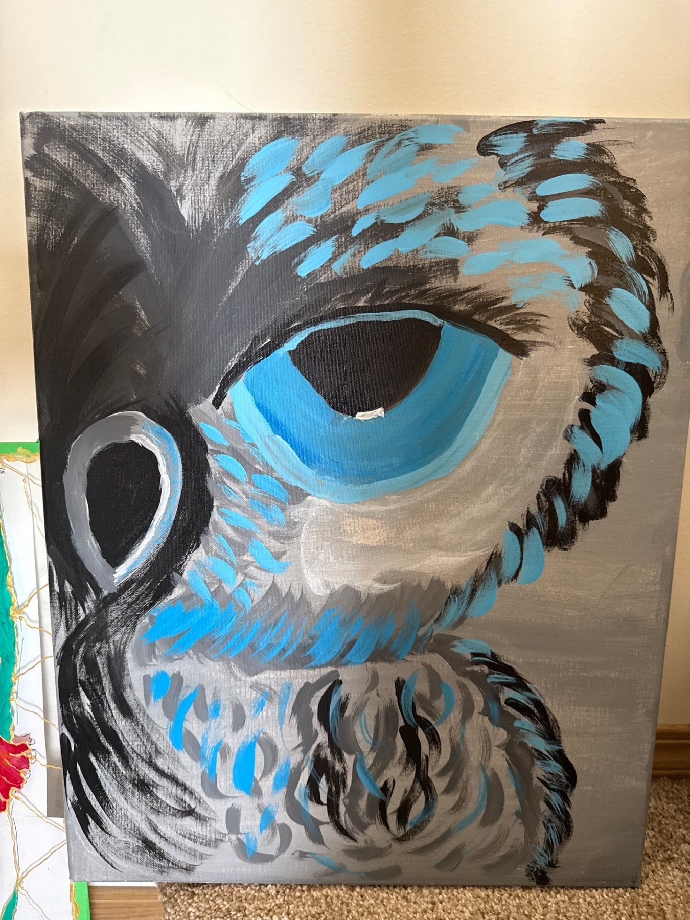 Stained Glass Poppy Art  w/ Owl Oil On Canvas Art 18T