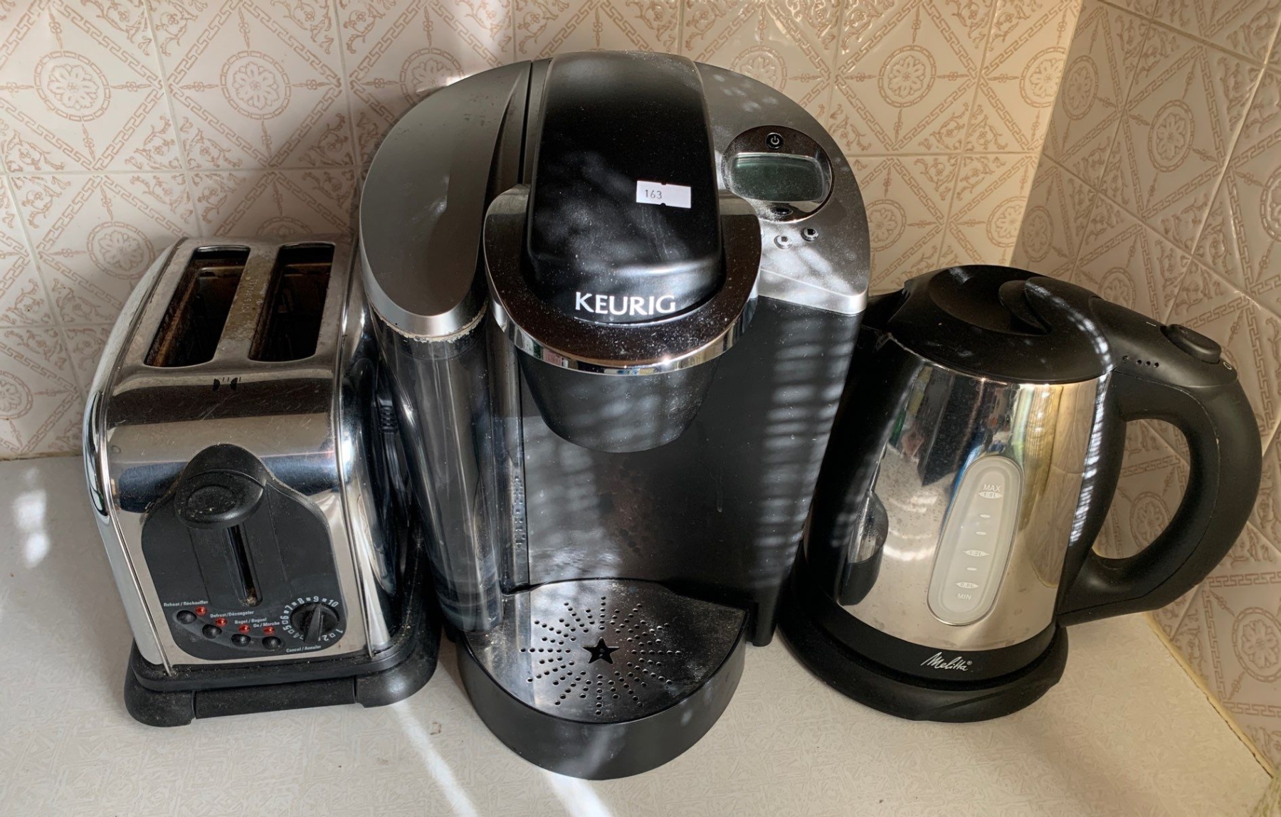 Stainless Steel Appliances - Keurig Single Serving Coffee Pot, Toaster, and Kettle