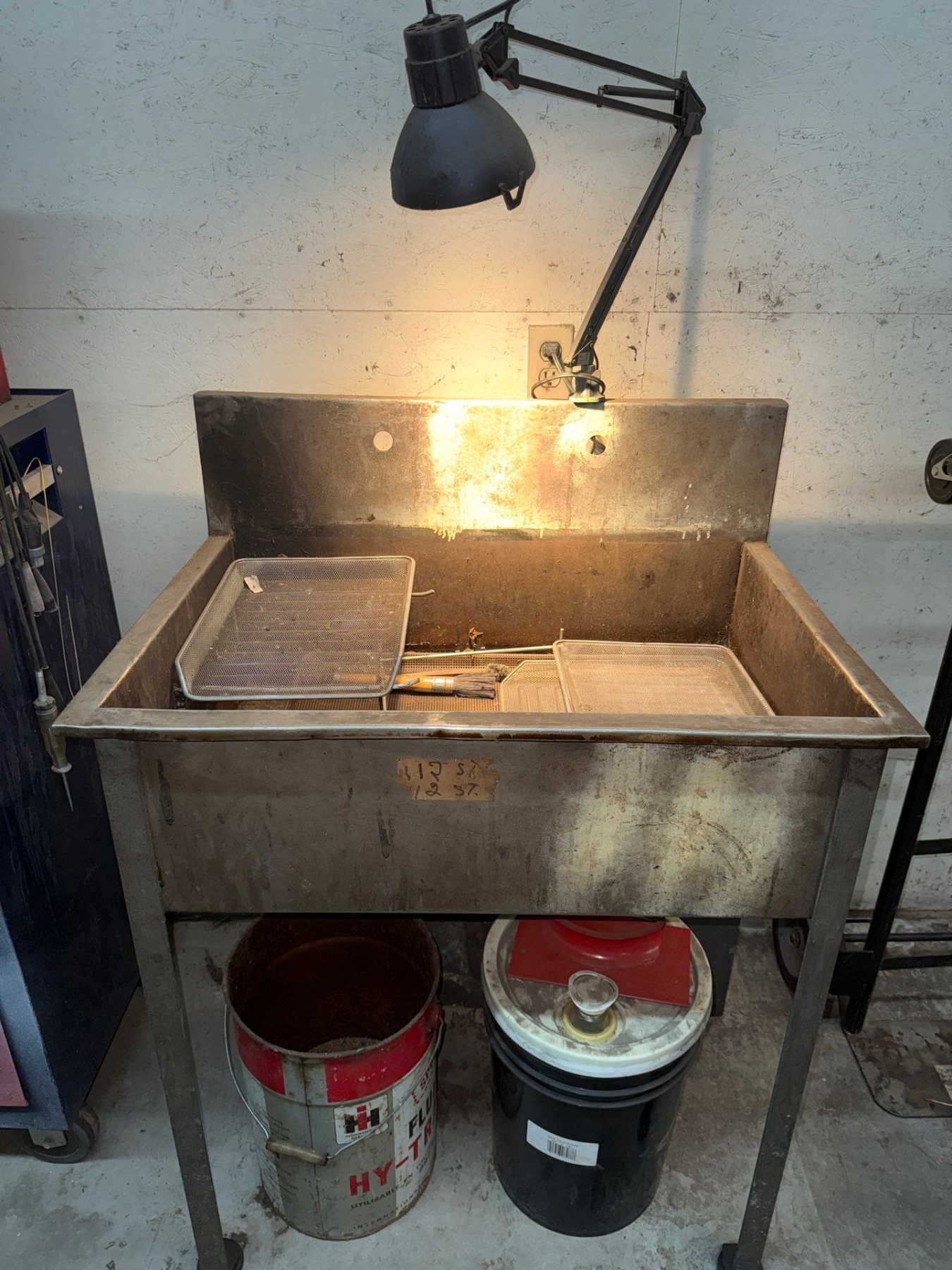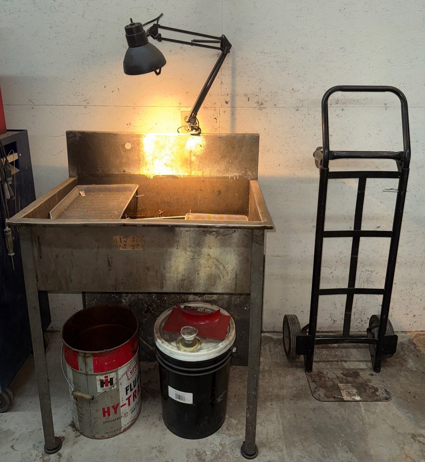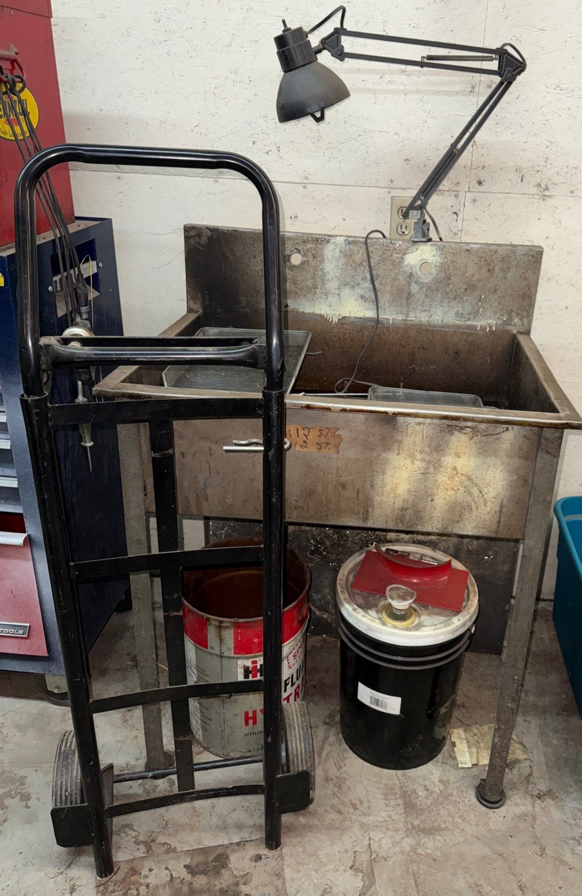 Stainless Steel Shop Sink w/Lamp & Moving Dolly