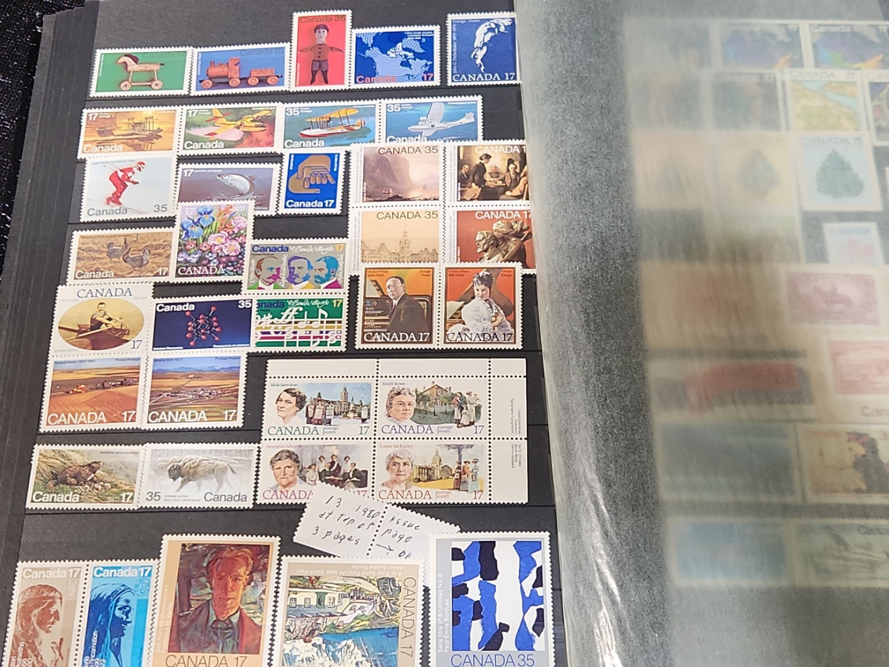 A well-organized binder containing a varied selection of Canadian stamps, featuring both commemorative and definitive issues from multiple decades. Pages include a mix of used and unused examples, showcasing themes, events, and historical subjects from Canada’s postal history. A solid collector’s grouping with plenty of material for sorting, upgrading, and expanding a Canadian stamp collection.