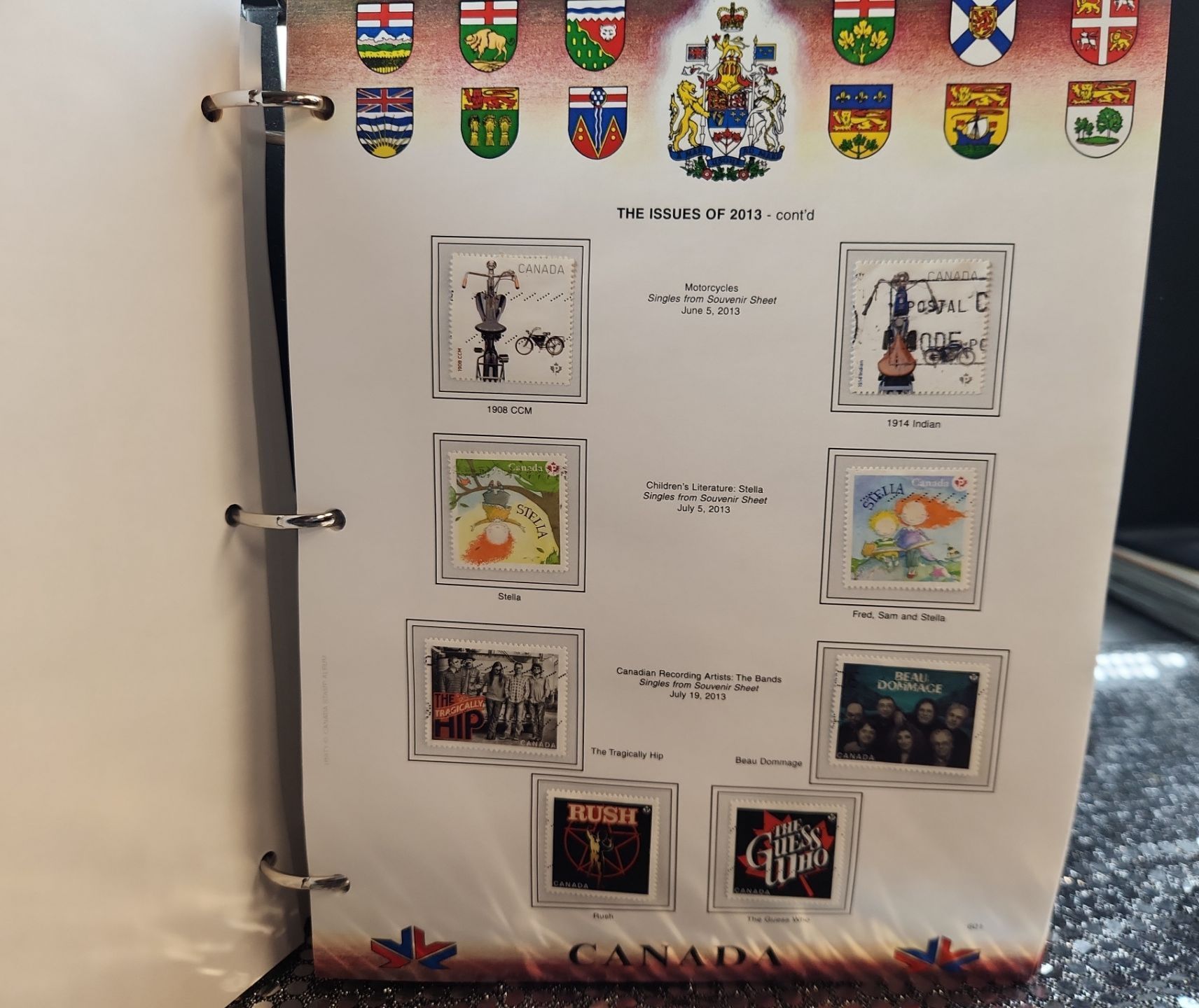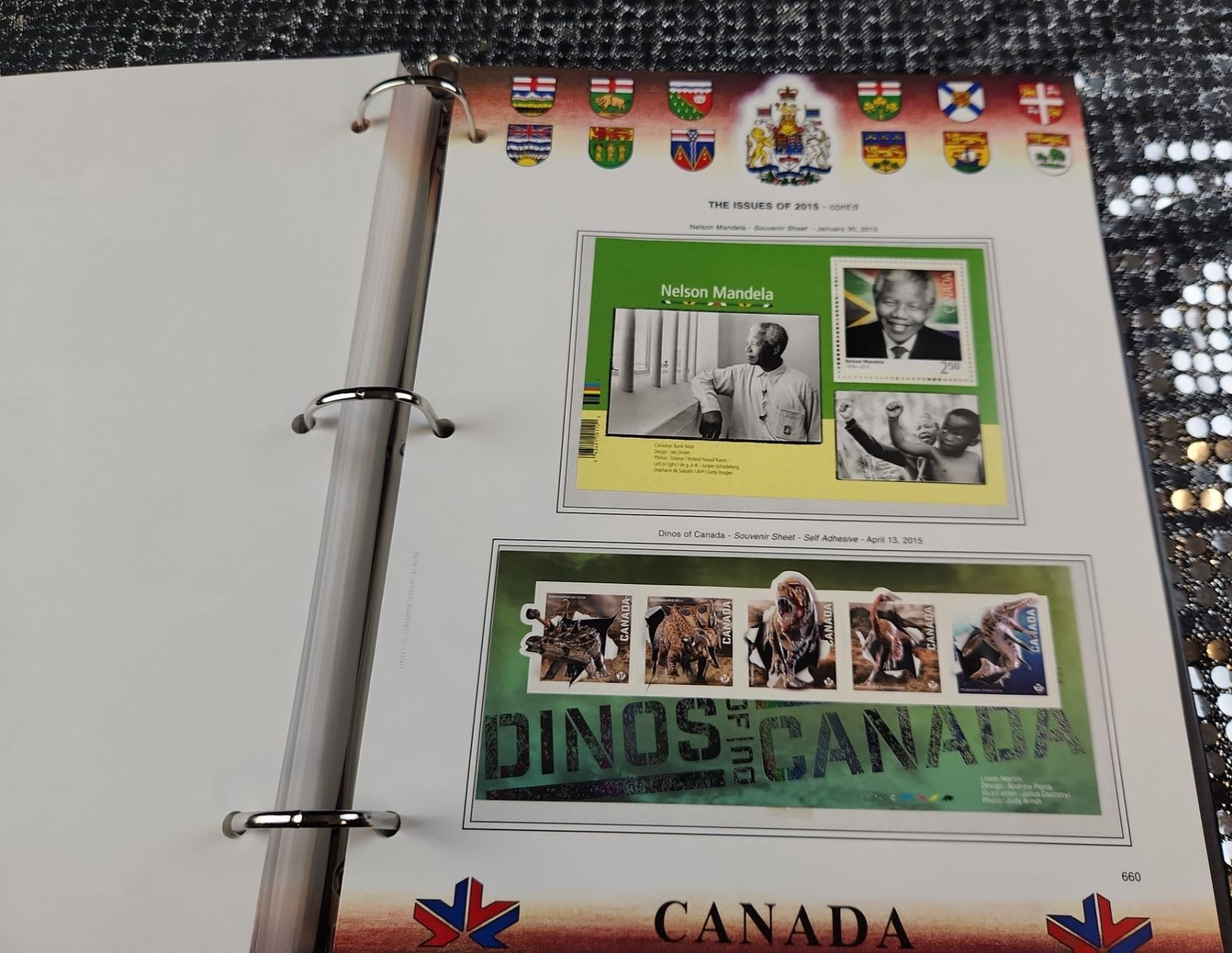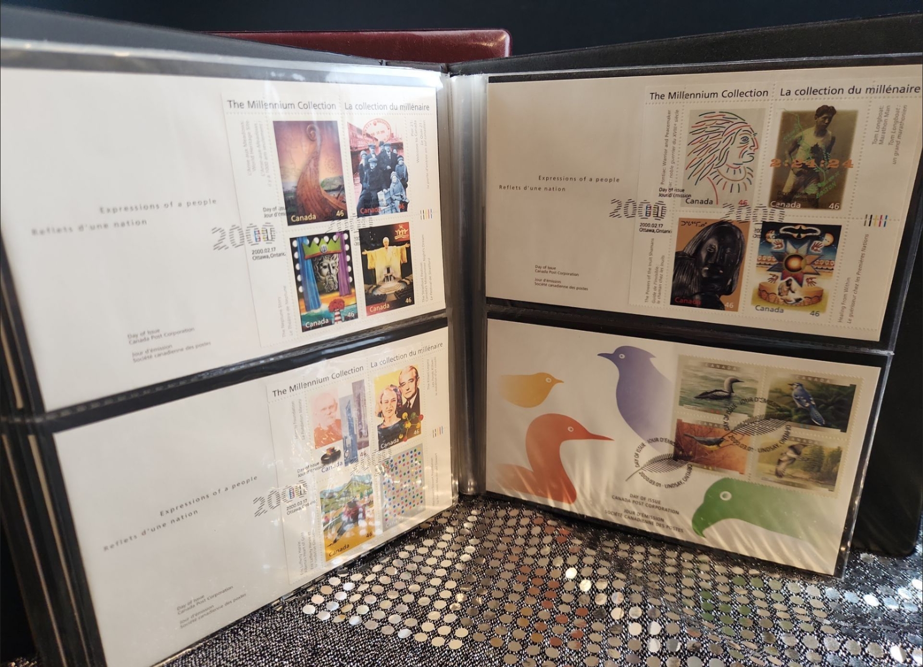 This item lot is a 2 binder collection of Canadian philatelic collectibles, containing First Day Covers (FDCs) from Canada Post, which are envelopes featuring postage stamps, cancelled on their first day of release. These covers depict various scenes related to Canadian history and culture, Canadian wildlife and commemorative stamps. Housed in protective plastic sheets.