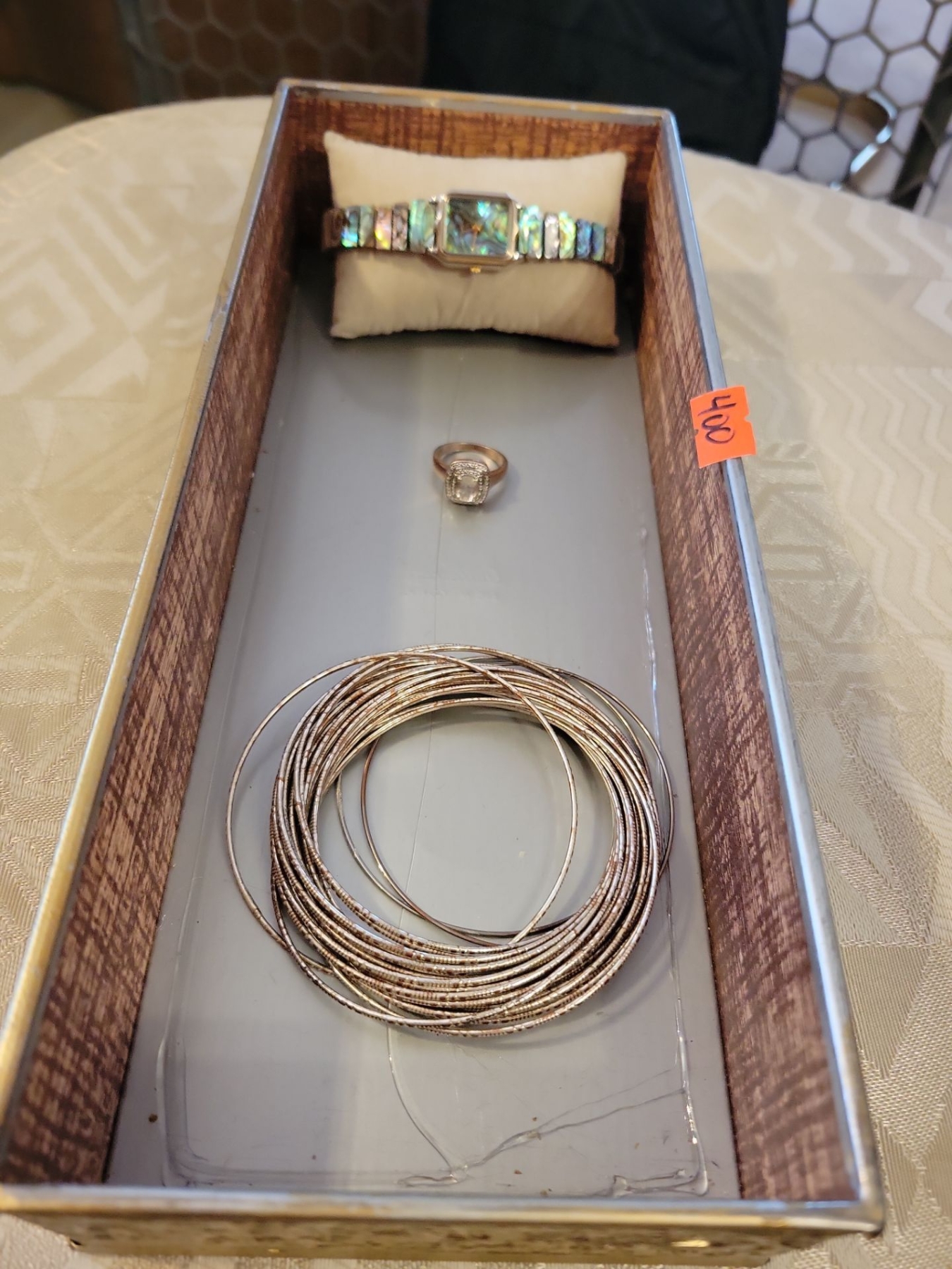Stamped 925 Ring, Mother of Pearl Quartz Watch, Bangles,