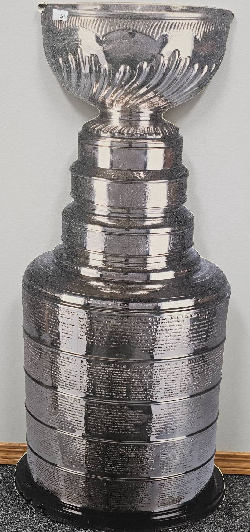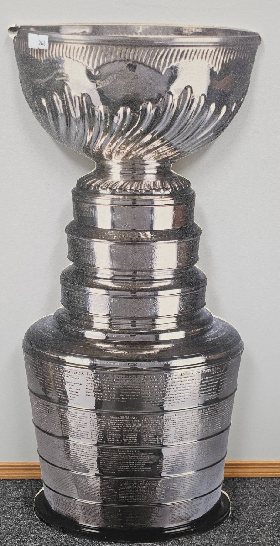 Add a touch of championship spirit to your space with this 34 x 13 inch Stanley Cup cardboard cutout. Perfect for sports enthusiasts, collectors, or event decorations, this piece captures the iconic trophy's design in striking detail. Its lightweight nature allows for easy display, making it an excellent centerpiece or conversation starter.