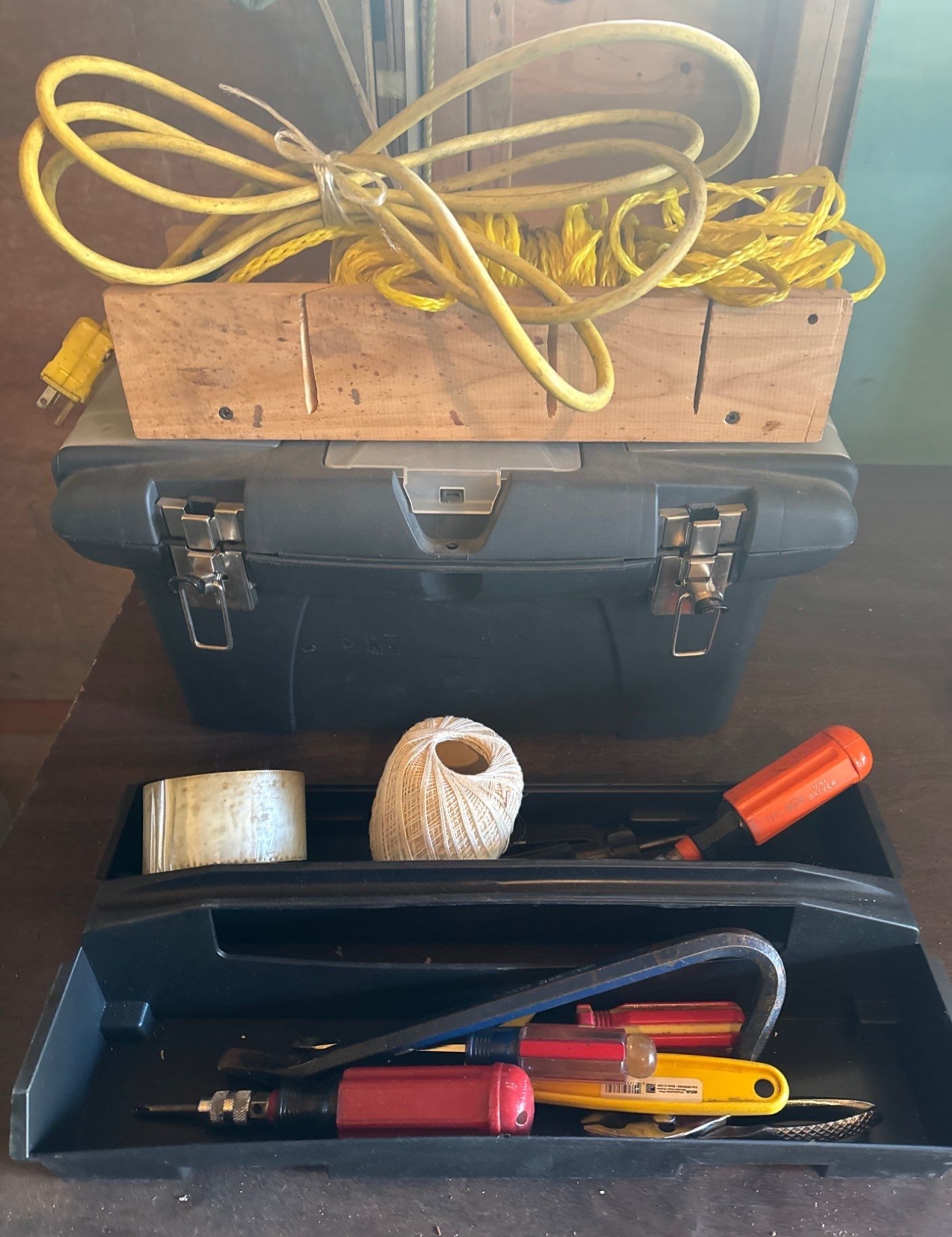 Stanley Plastic Tool Box w/ Basic Hand Tools & Wood Chopping Block