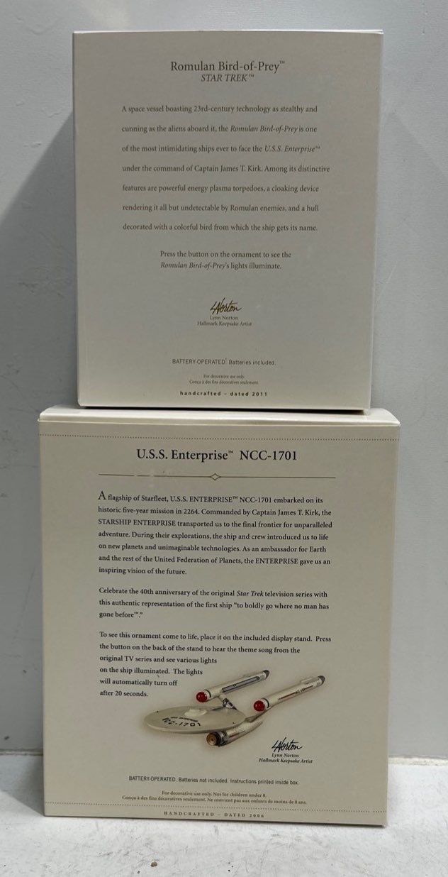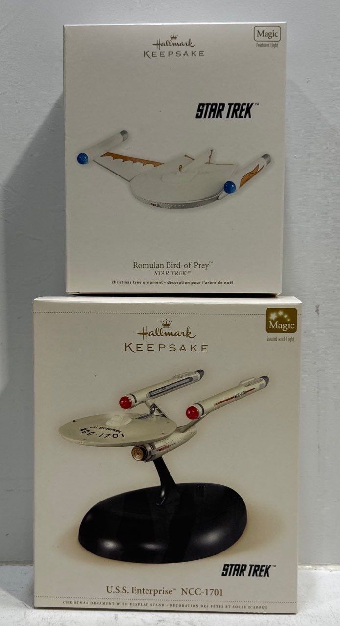 Star Trek - USS Enterprise NCC 1701, Romulan Bird of Prey Hallmark Ornaments