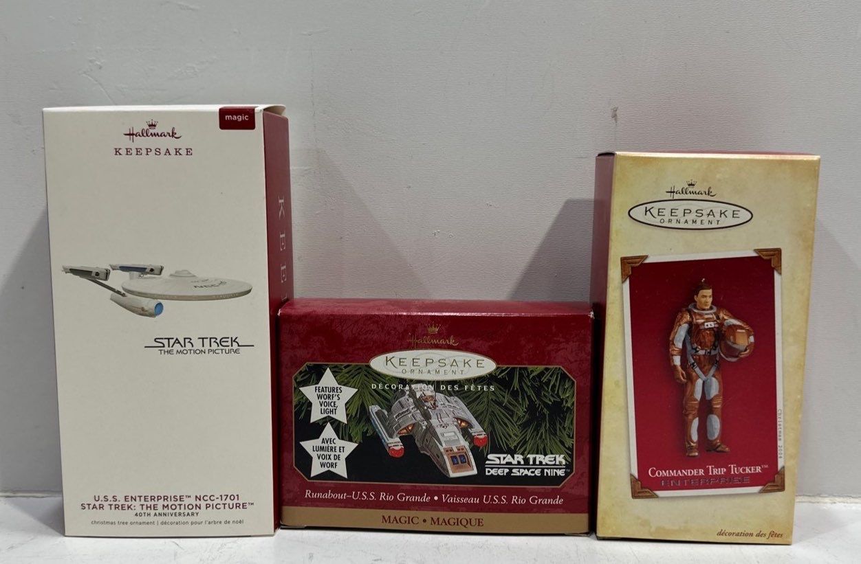 Star Trek- USS Enterprise, USS Rio Grande, Cmdr Trip Hallmark Ornaments