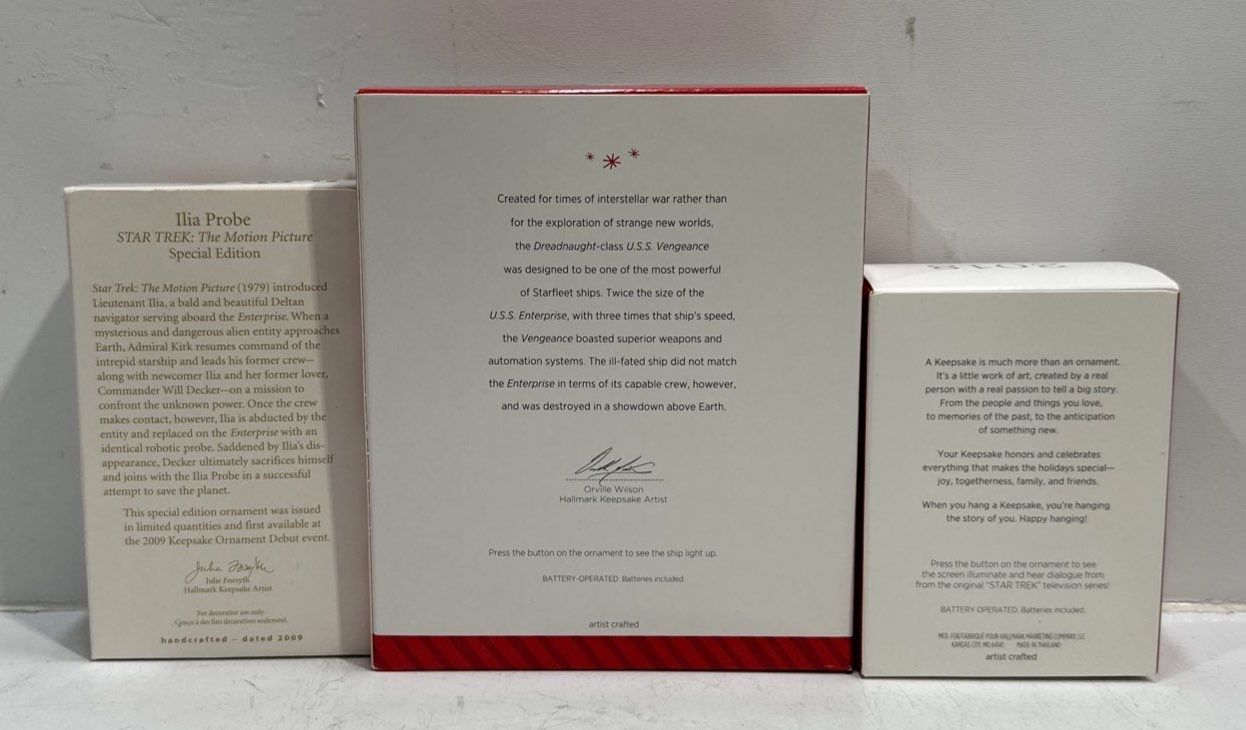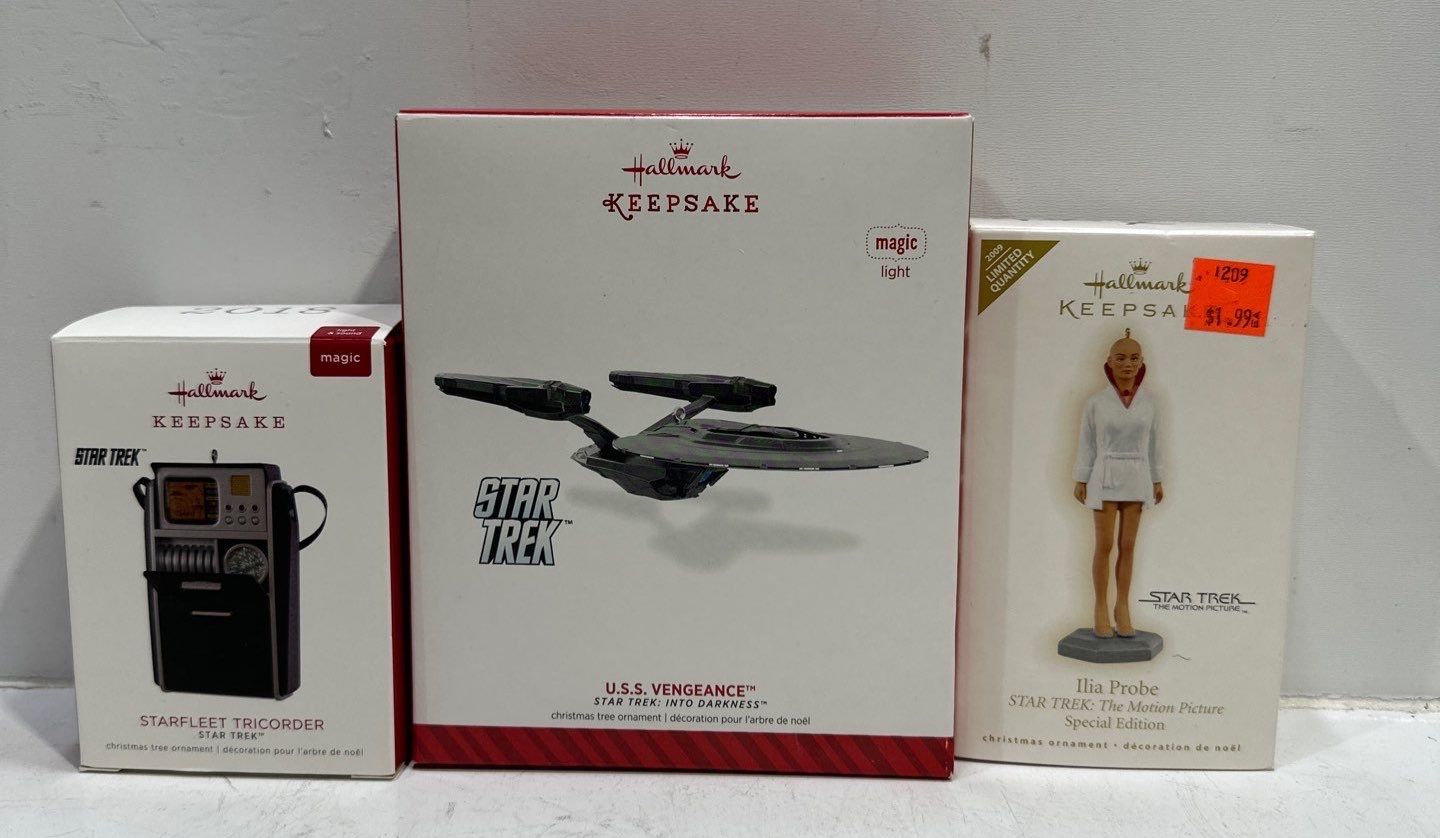 Star Trek- USS Vengeance , Ilia Probe , StarfleetTicorder Hallmark Ornaments
