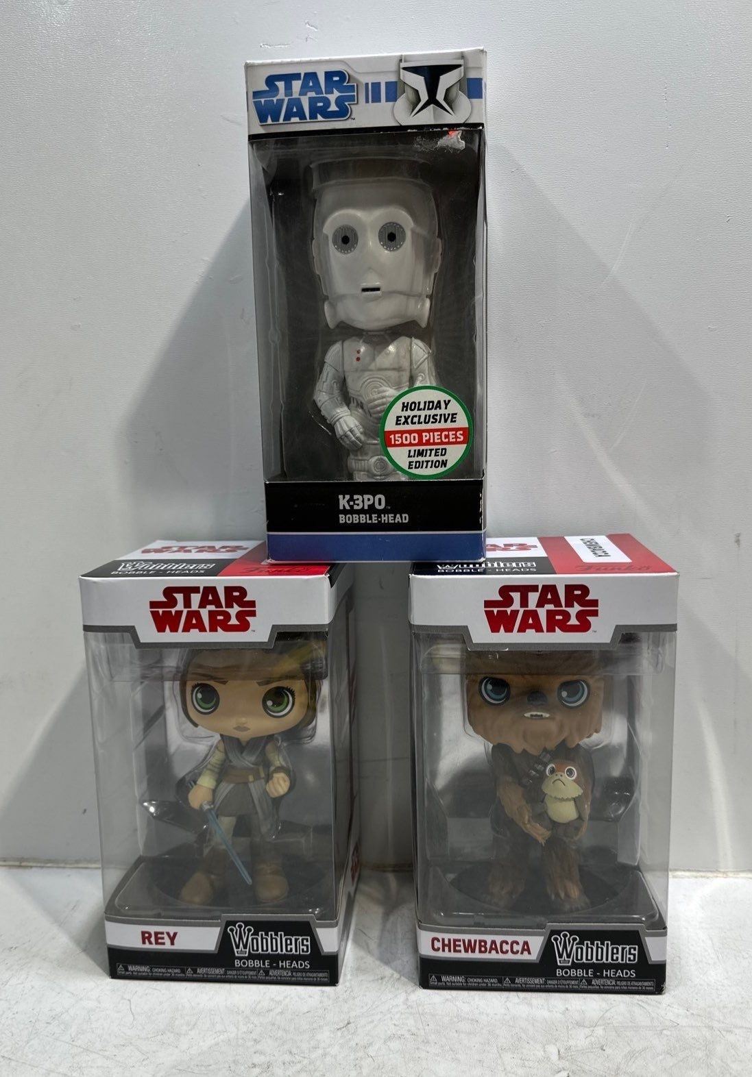 Star Wars-K-3PO Vinyl Bobbel Head & Rey, Chewbacca Wobblers
