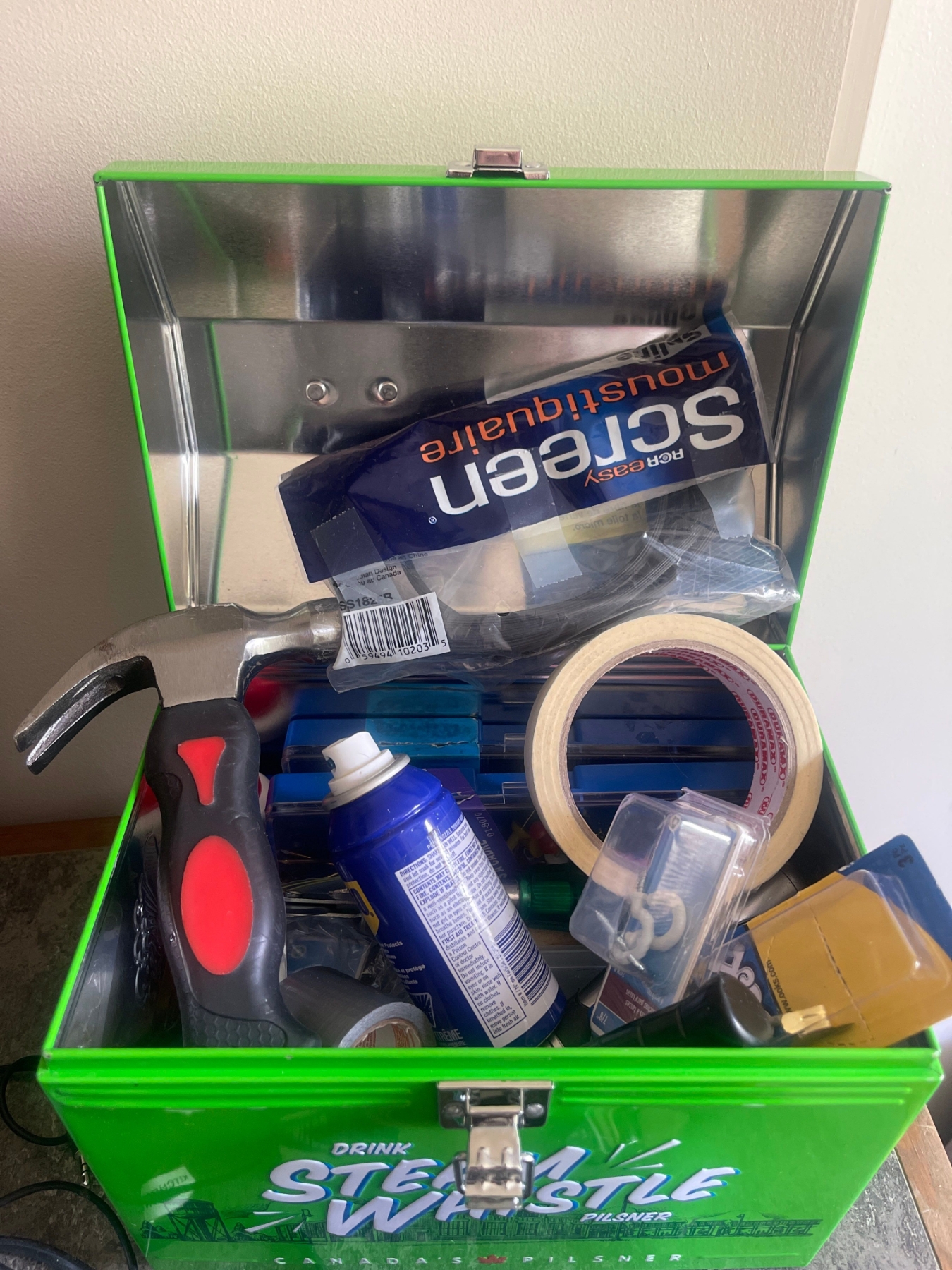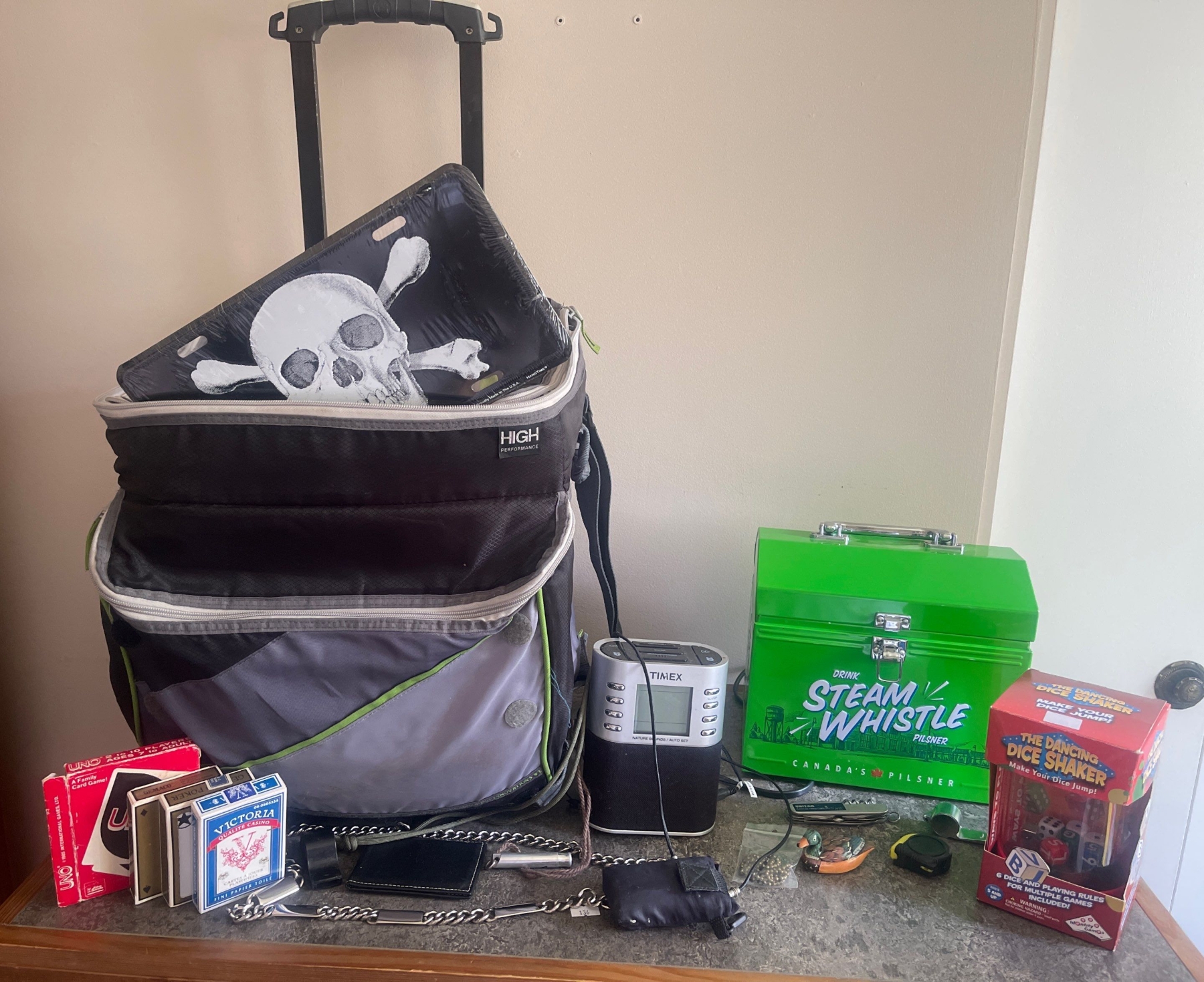 Steam Whistle Chest Full Of Assorted Handtools Dancing Dice Game Timex Alarm Radio