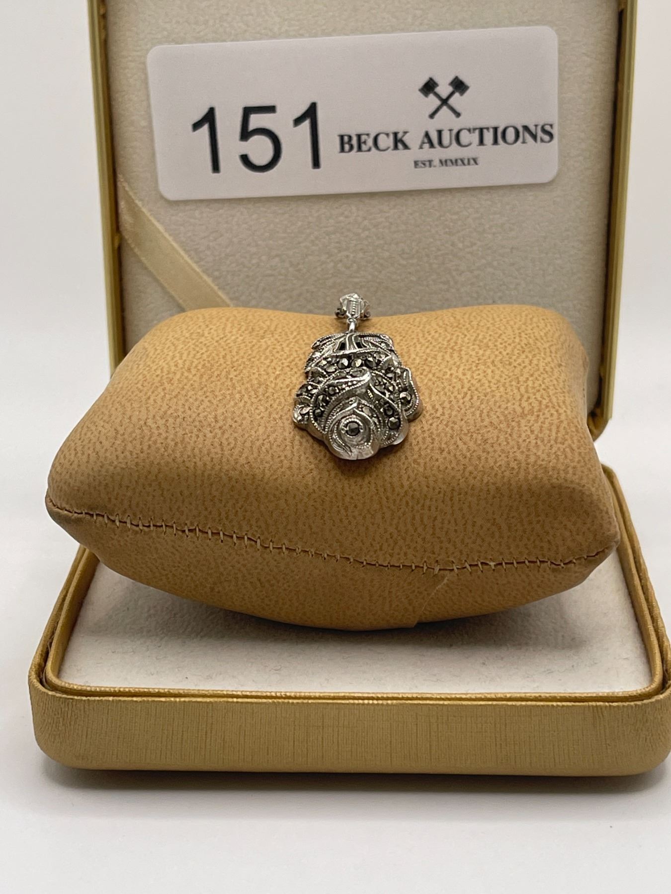 Sterling Silver Marcasite Pendant & Chain 18" 8g
