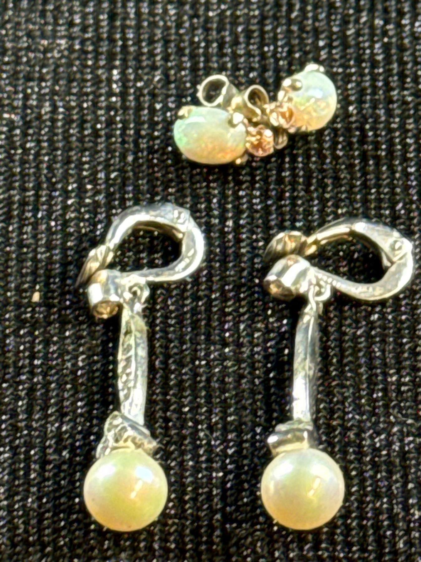 Sterling Silver Marchesite Pearl & Opal Ear Rings 5.4g