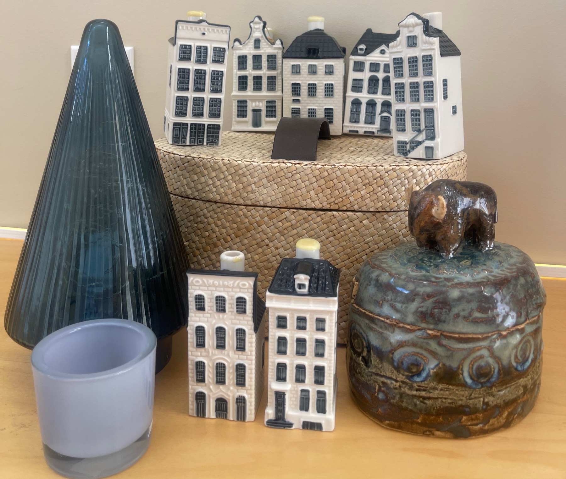 Stoneware Bison Trinket Dish 6T Empty KLM BOLS Delft Blue Houses Woven Basket & More