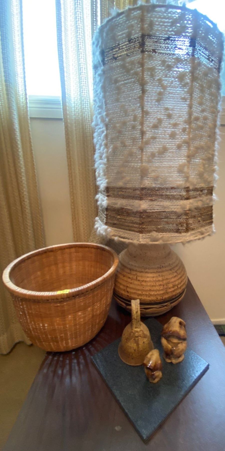 Stoneware Lamp14 x 30 Woven Basket 2 Handmade Sculptures