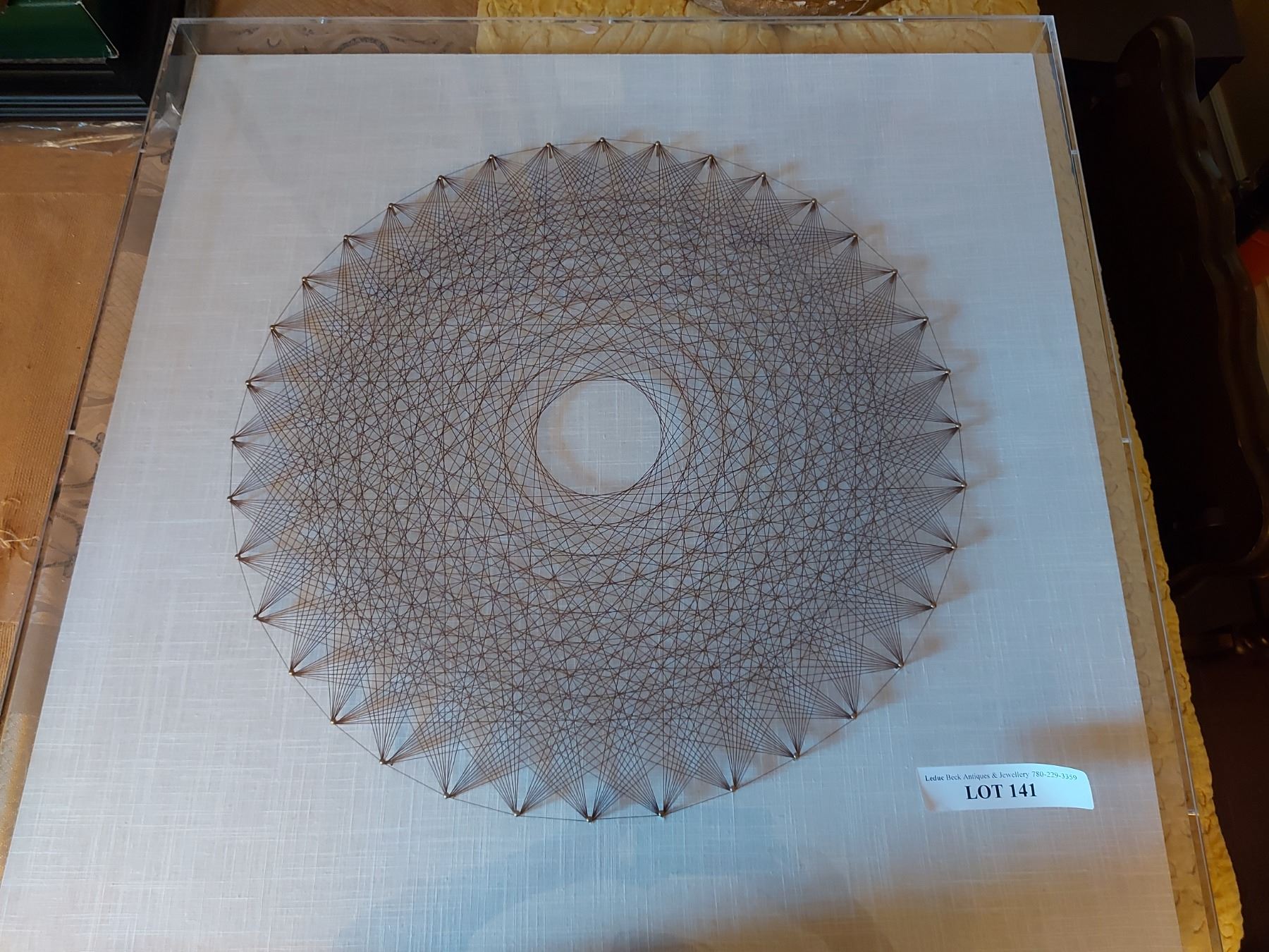 String art (framed, 29.5" x 29.5" x 2.5"D) Tiger painting print (x2, artist: Gail Adams) (29"x 23")