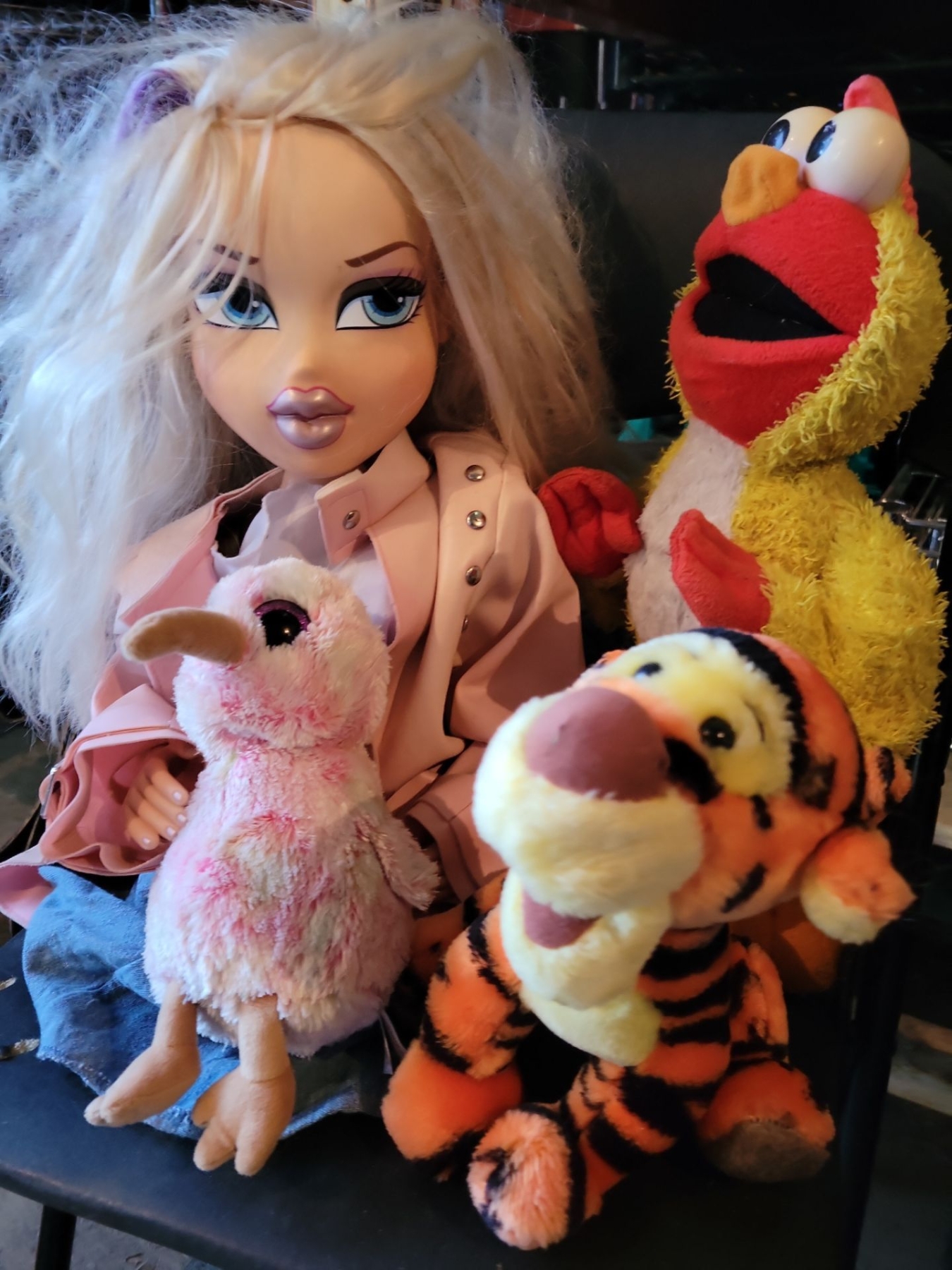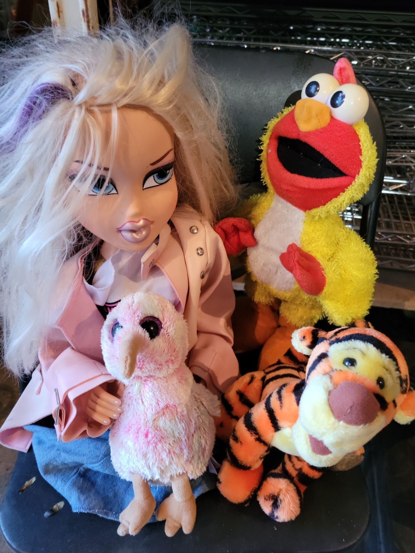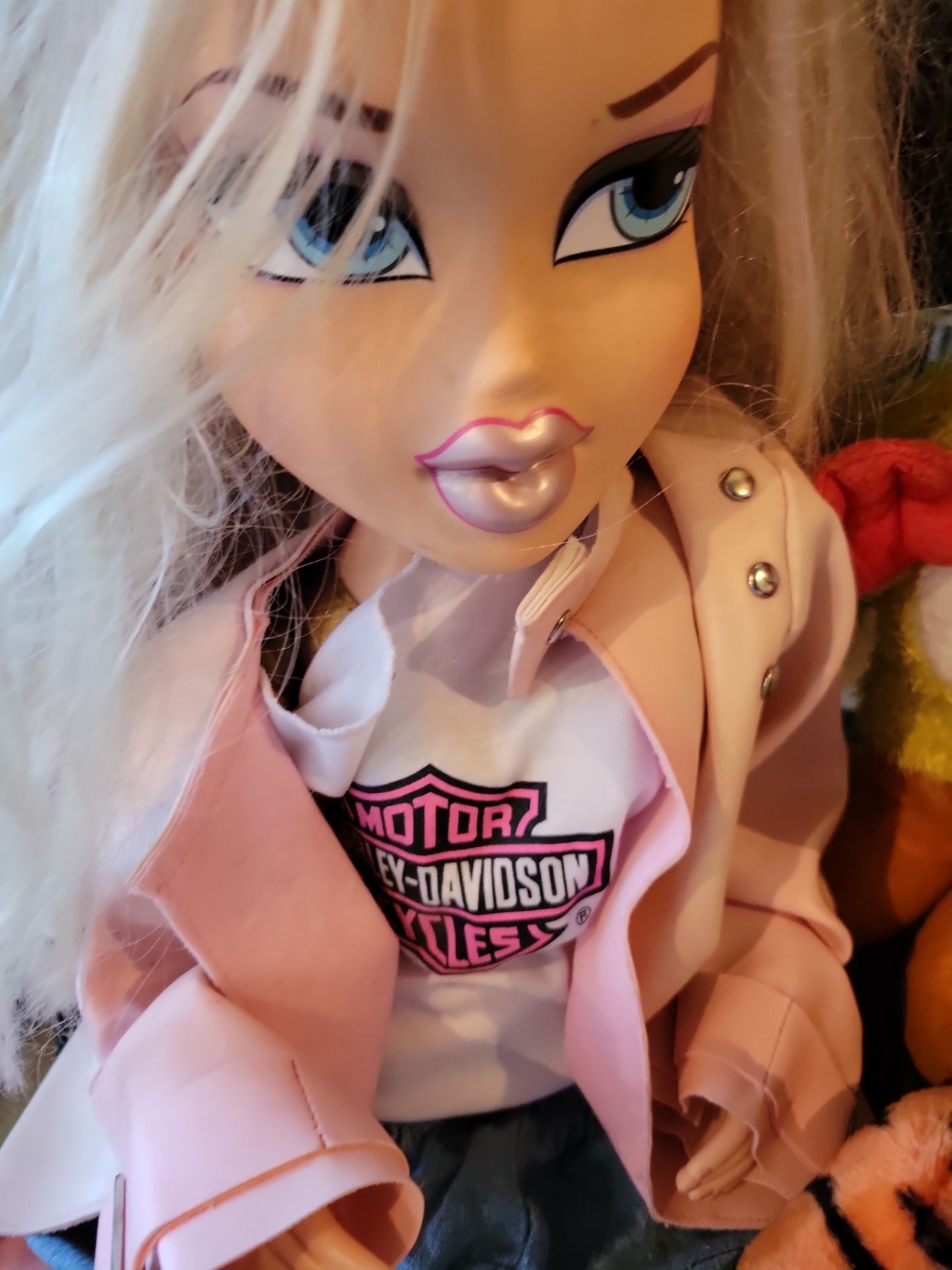 Stuffed Animals and Bratz Doll Dressed in Harley Davidson