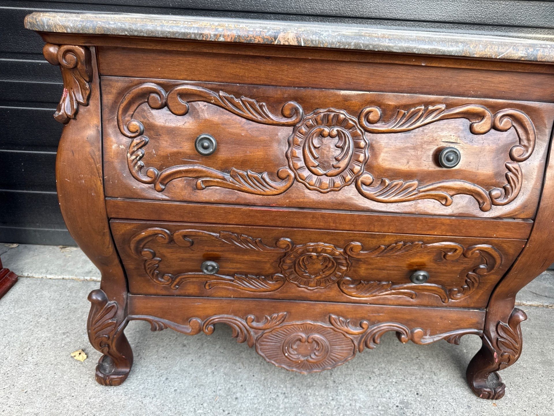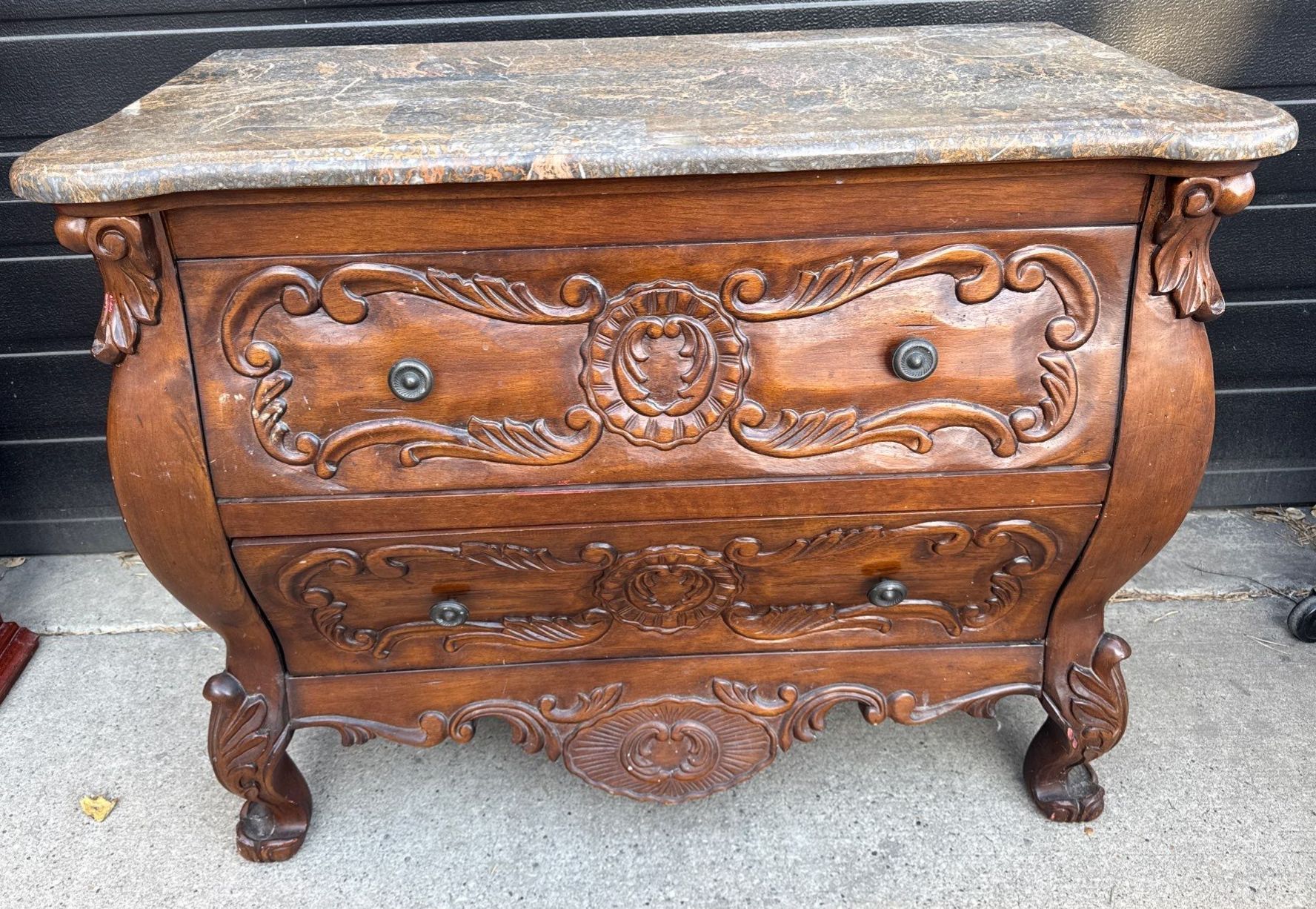 Stunning Oak w/ Stone Top Bombay Chest Of Drawers 39x16x30