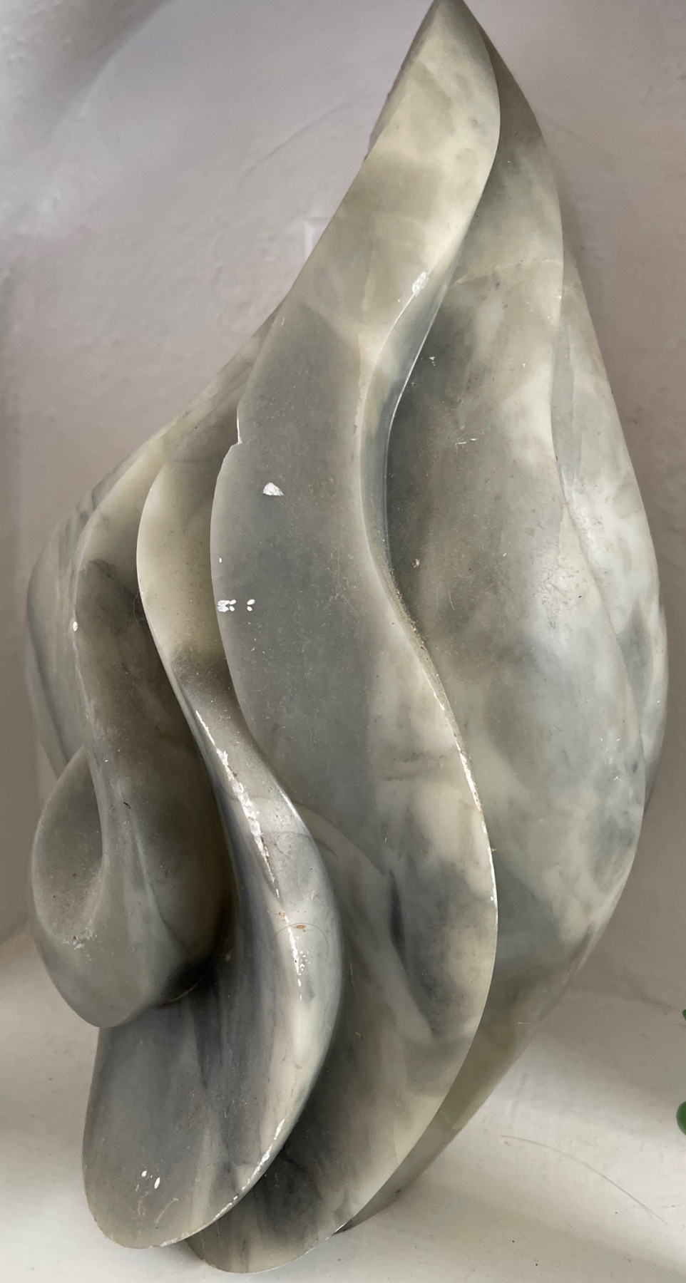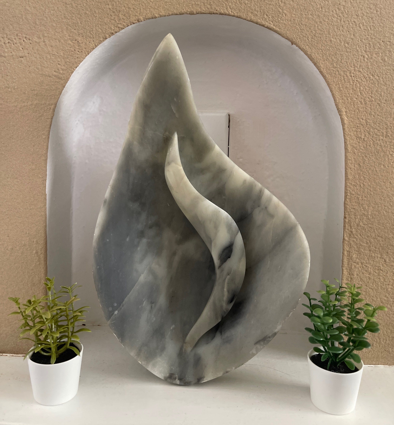 Stunning Stone Home Decor Piece w/ Two Small Faux Plants 13" tall