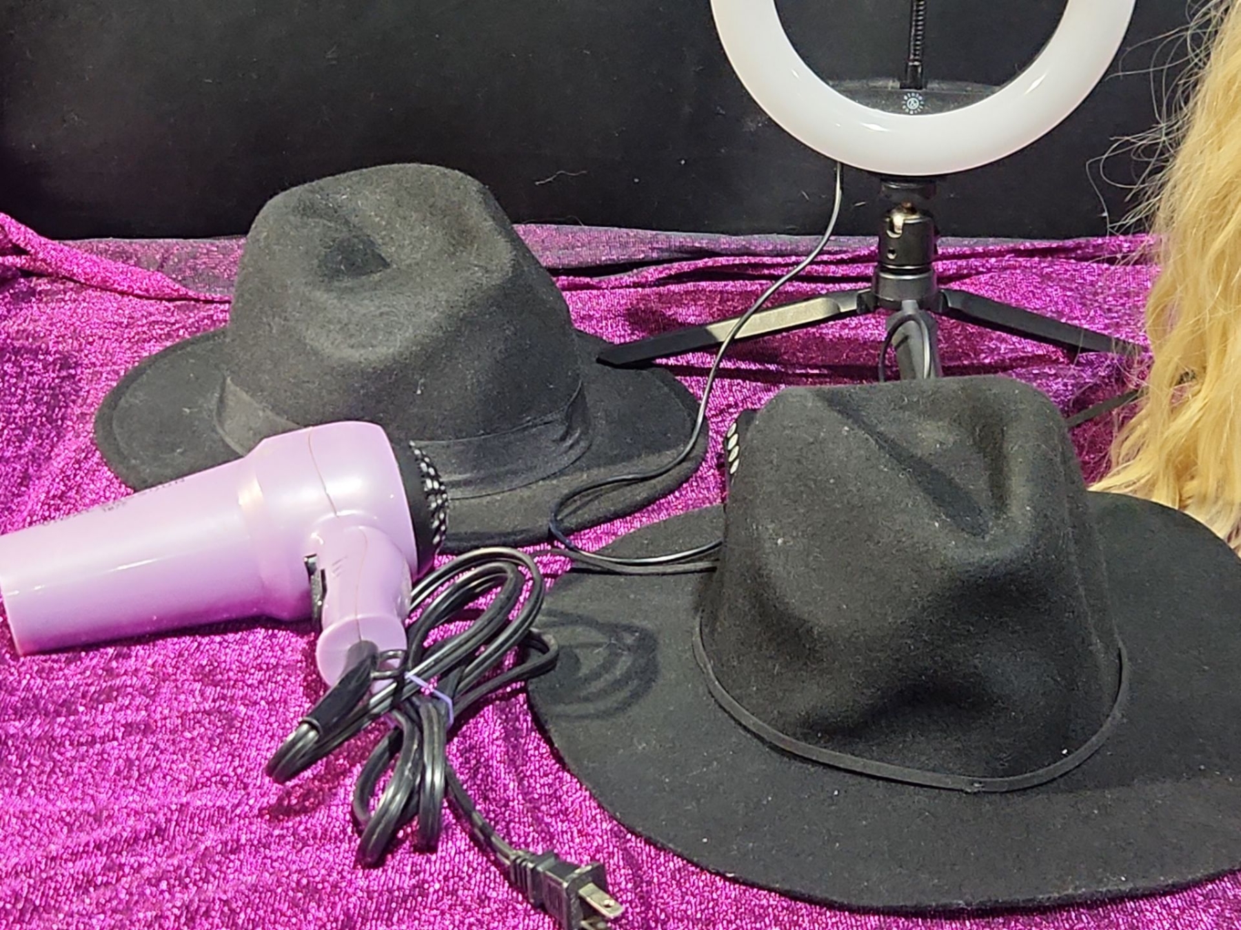 A great combination for style lovers! This lot features fashionable hats, a new wig, a reliable blow dryer, and a selfie ring light—everything you need for creating new looks and capturing them beautifully. Perfect for photo shoots, dressing up, or everyday glam.