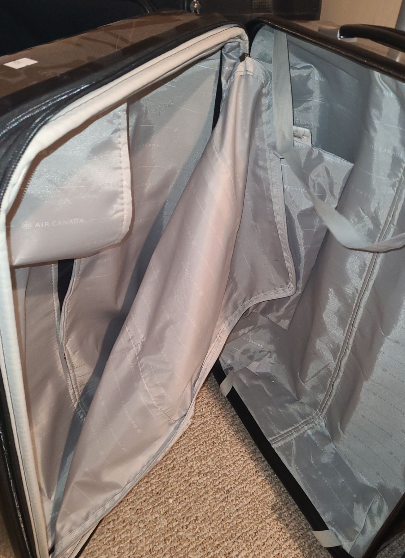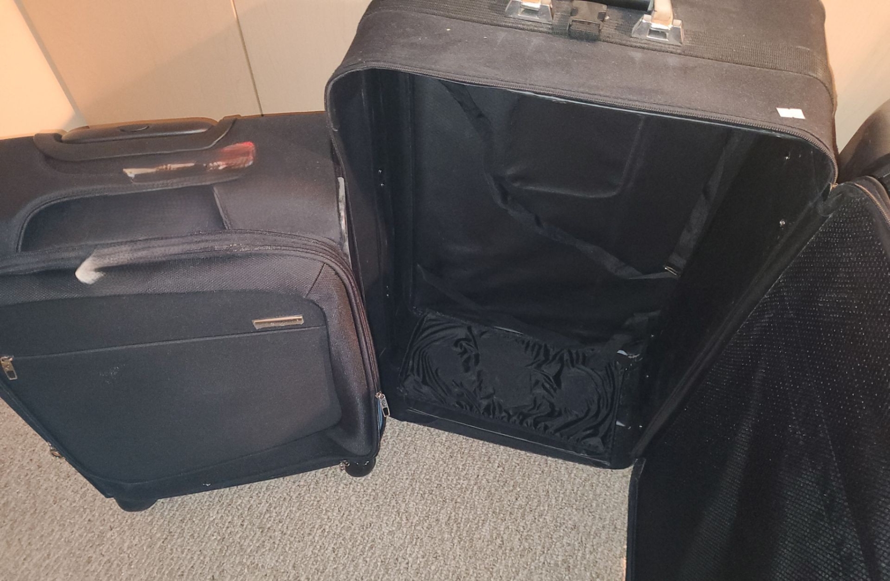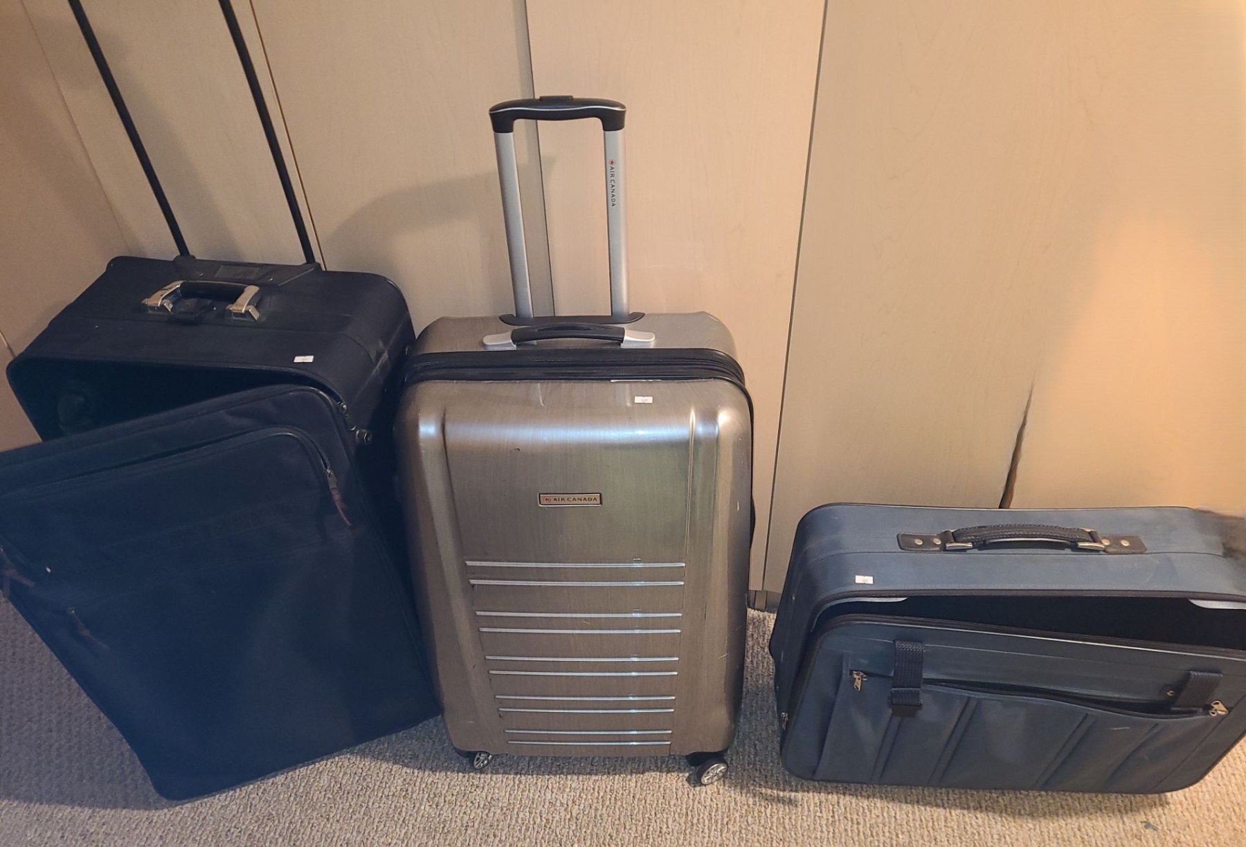 Suitcases Including: Silver Air Canada 18 W, 10 D, 29 T, Blue Samsonite 23 W, 8 D, 17 T