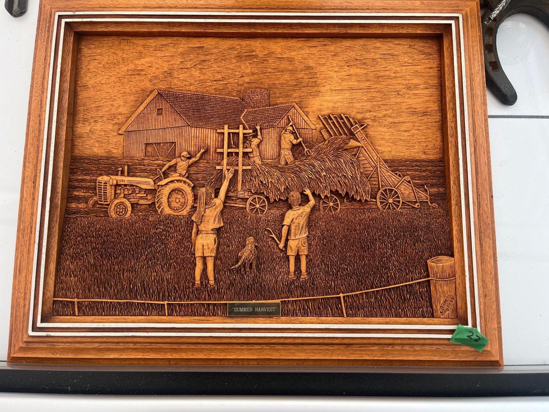 Summer Harvest Wood Art l19" W15" With Horseshoe Lamp & Horseshoe Art Sculpture