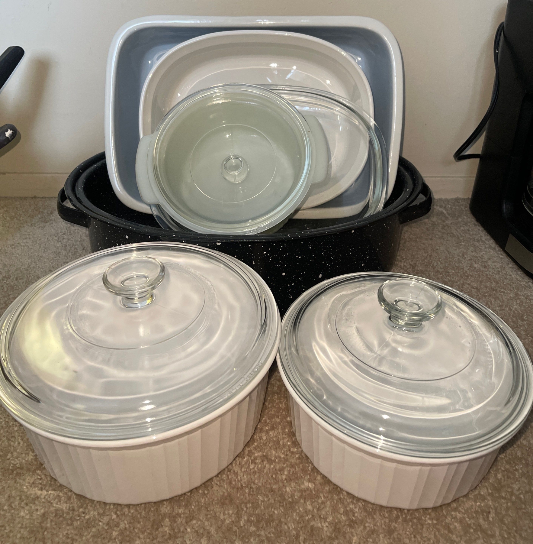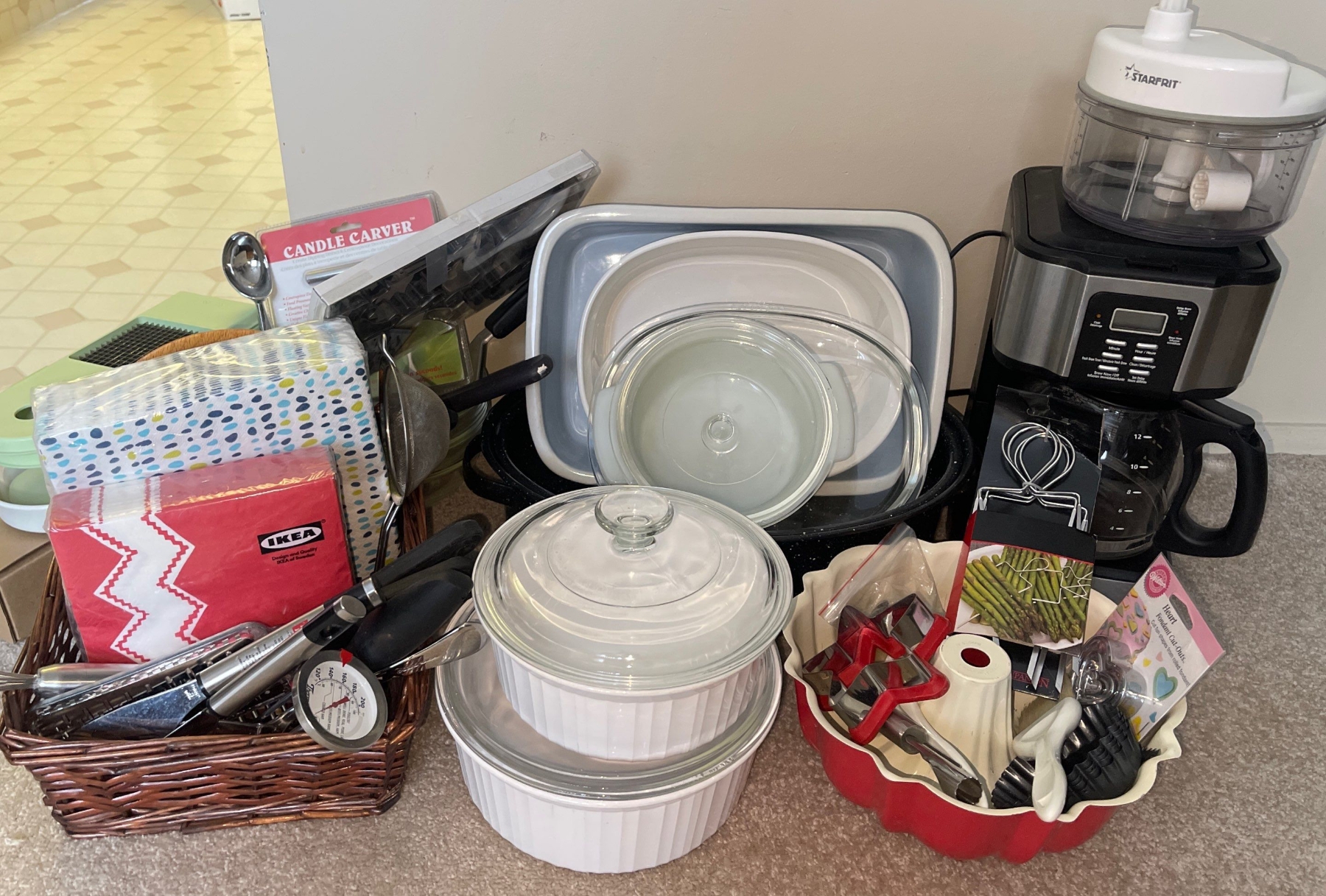 Sunbeam 12 Cup Coffee Pot, Roaster, Casserole Dishes, Kitchen BBq Utensils Plus Angel Food Pan