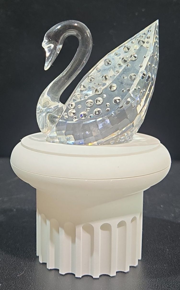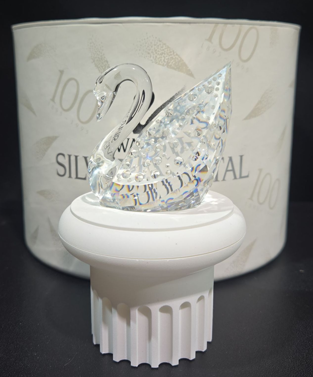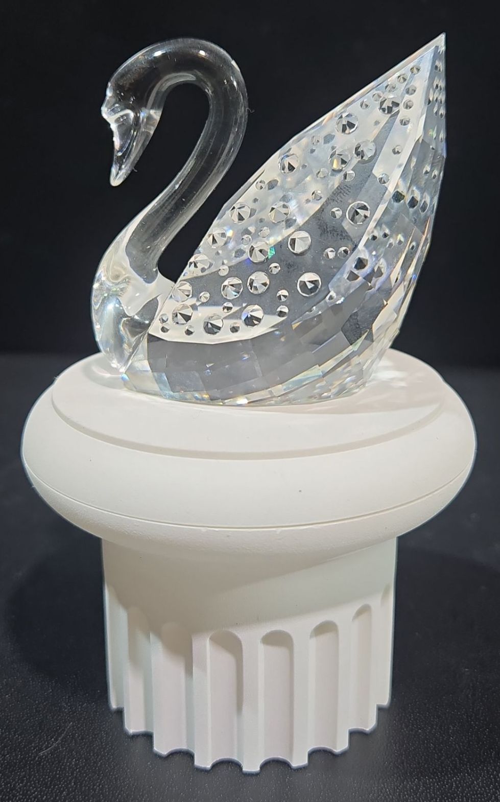 Swarovski Crystal 1995 Swan On White Pedestal (2.5 T & 2 L)