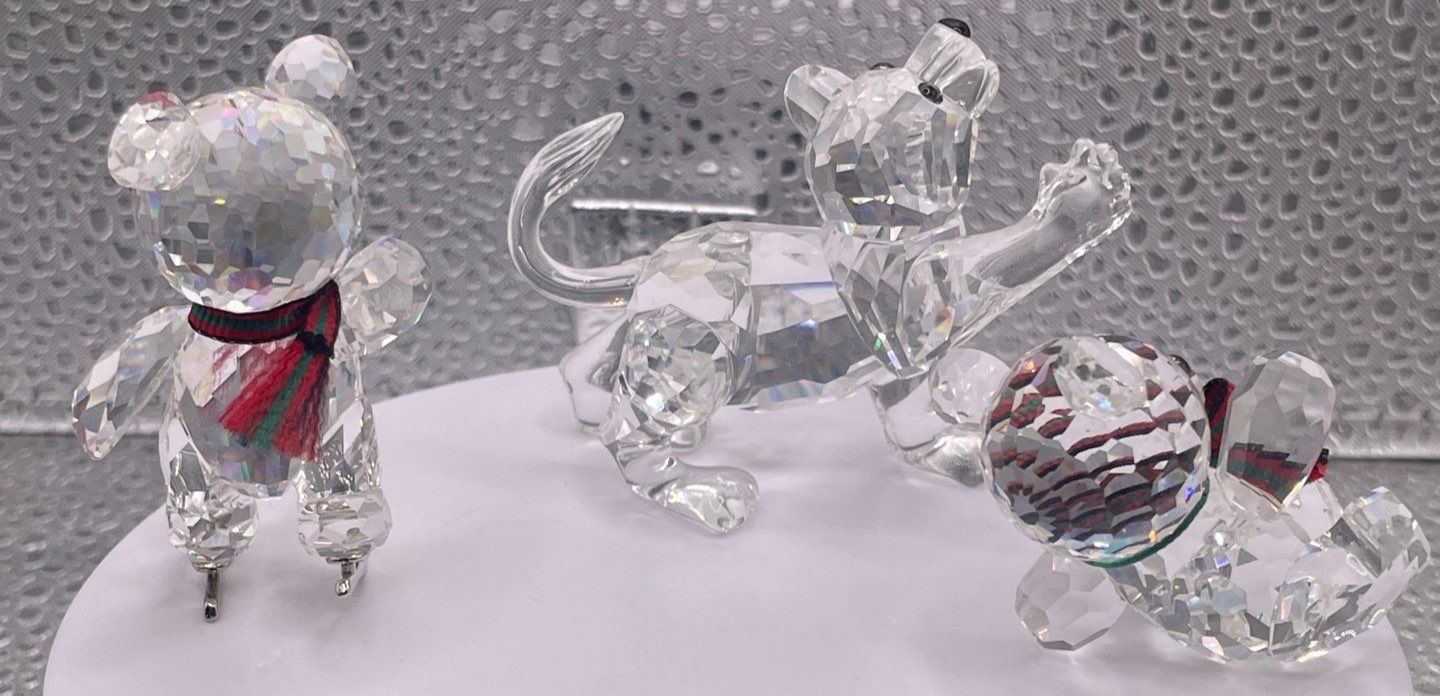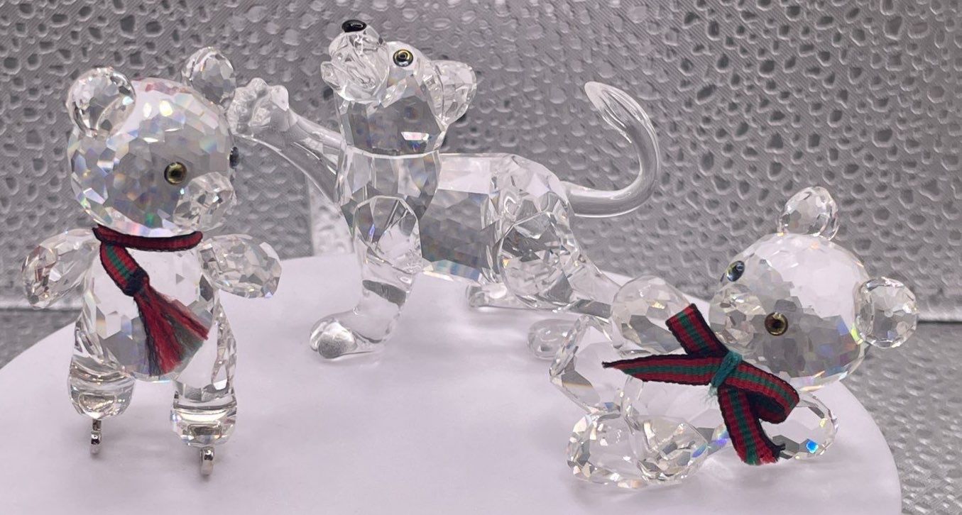 Swarovski Crystal 2 Teddy Bear Wearing Scarfs and a Loin Chub