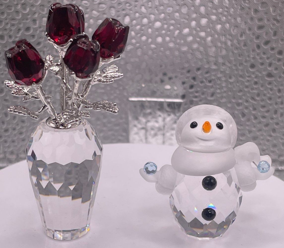 Swarovski Crystal Bouquet of Rose's and Snowman Holding Snowballs