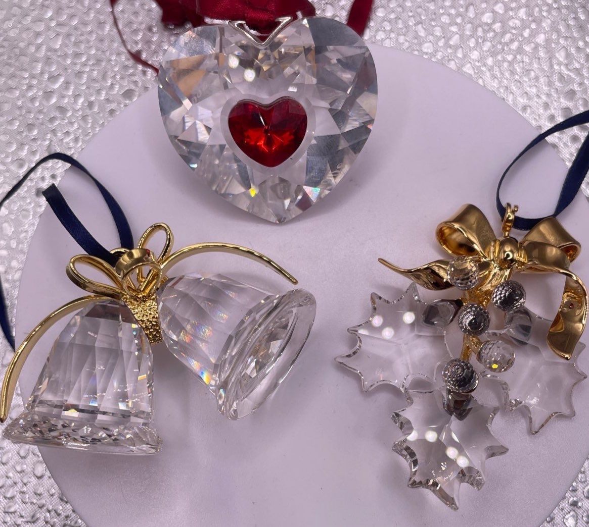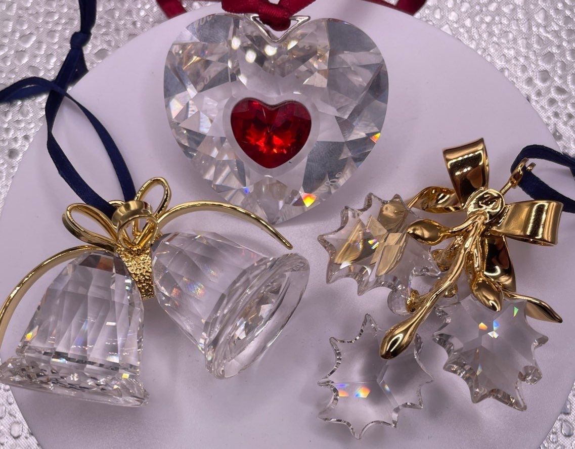 Swarovski Crystal Christmas Ornaments Bells, Mistletoe and Heart