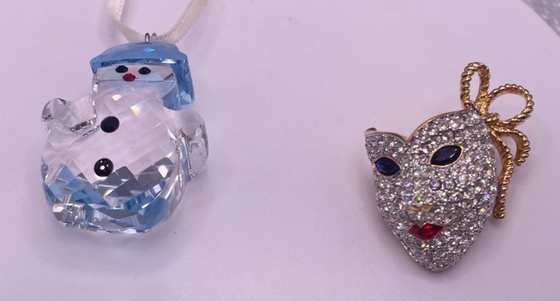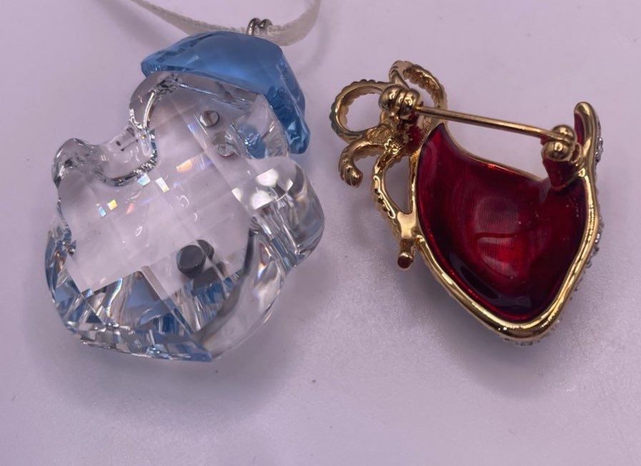 Swarovski Crystal Christmas Ornaments Snowman and Masquerade Mask Pin