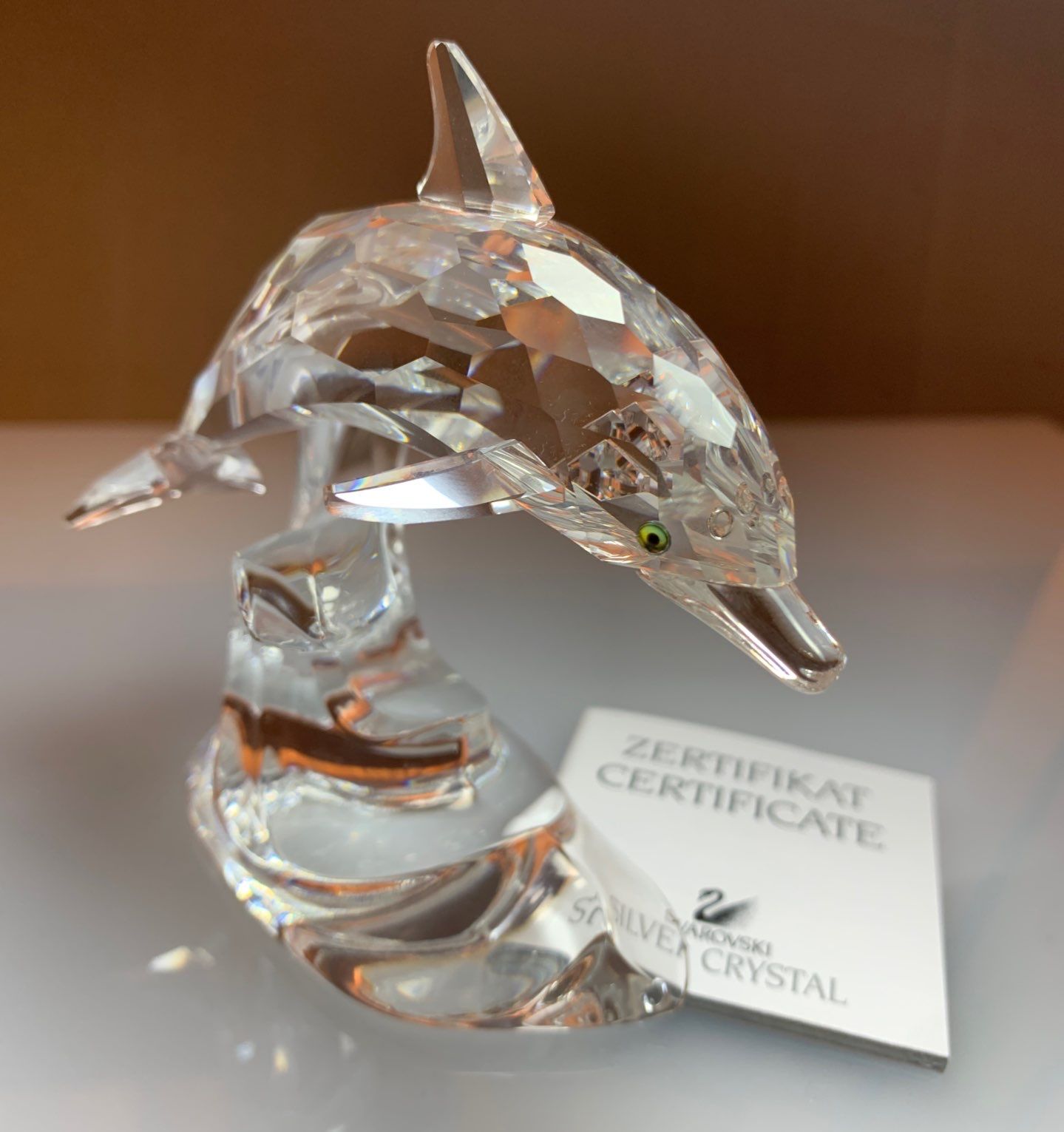 Swarovski Crystal Dolphin Riding The Surf 4L