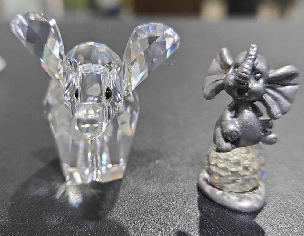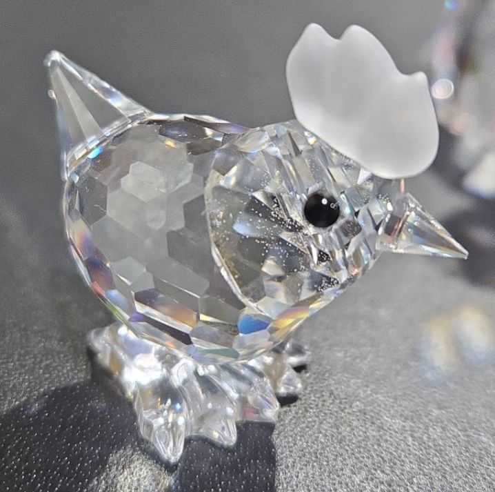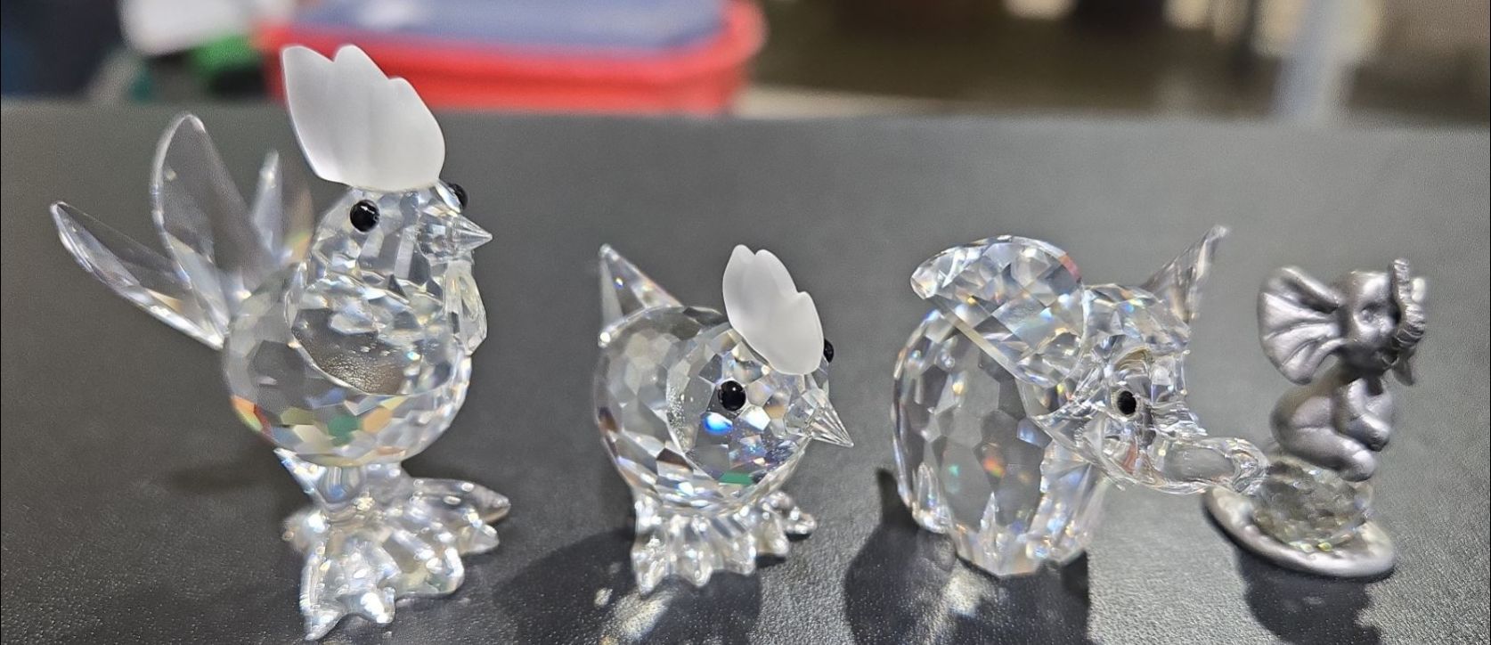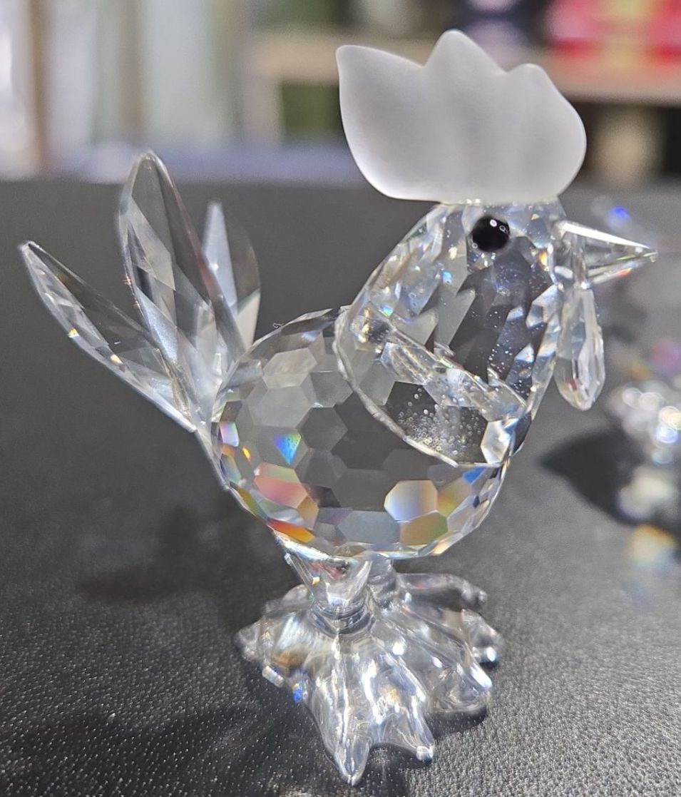 Swarovski Crystal Elephants (2), Rooster + Chicken (Each Approx 2  Tall)