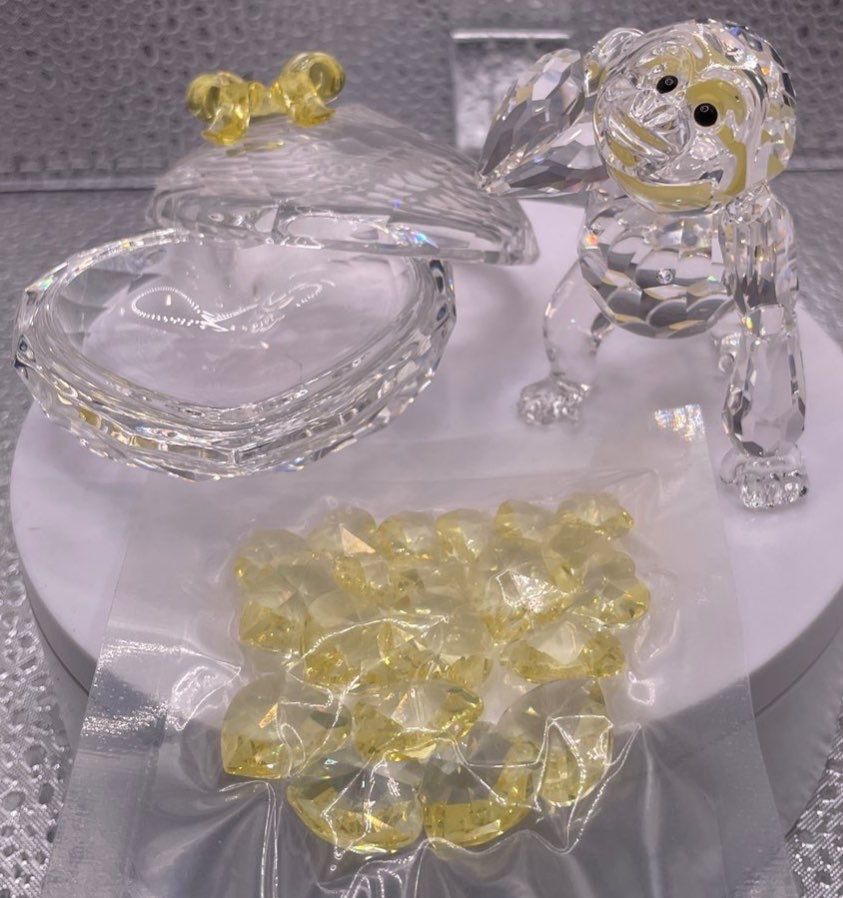 Swarovski Crystal Heart Candy Dish with Crystal Candies and Monkey