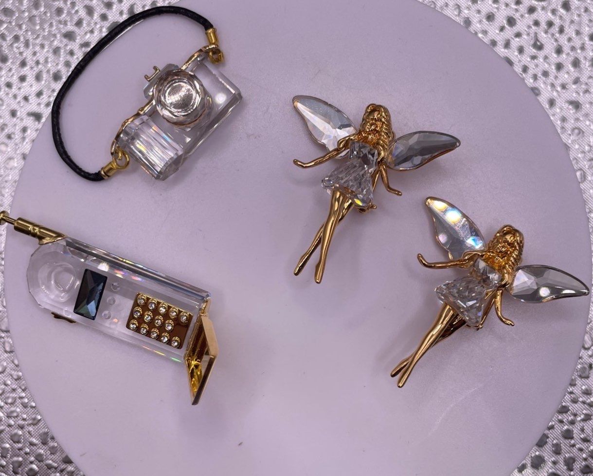 Swarovski Crystal Mini Figures 2 Fairies, Cellphone and Camera