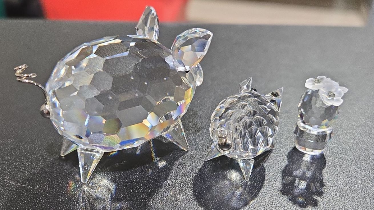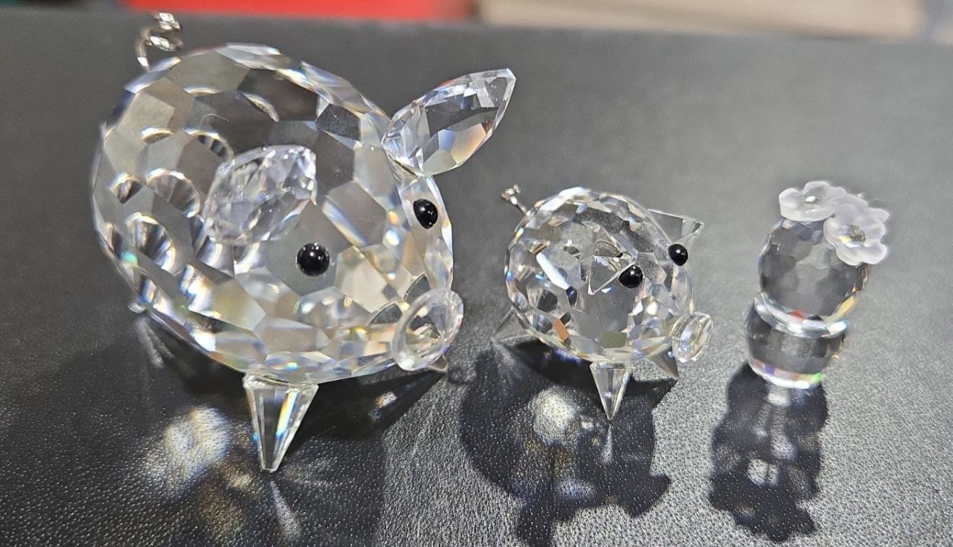 Swarovski Crystal Mother Pig (3 L) With Piglet (1 T) + Swarovski Flower Vase (1 T)