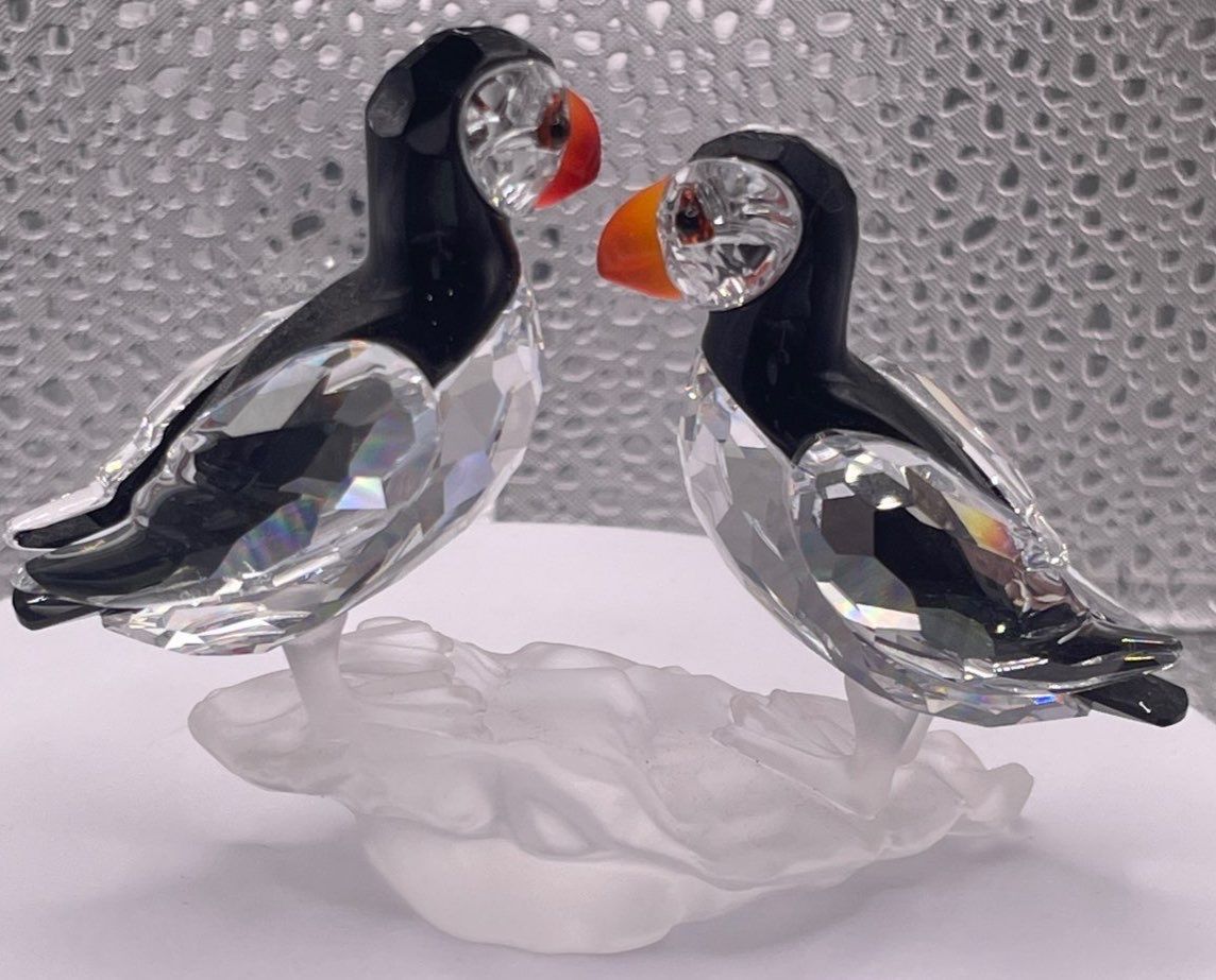 Swarovski Crystal Set of Puffins Standing on Rocks