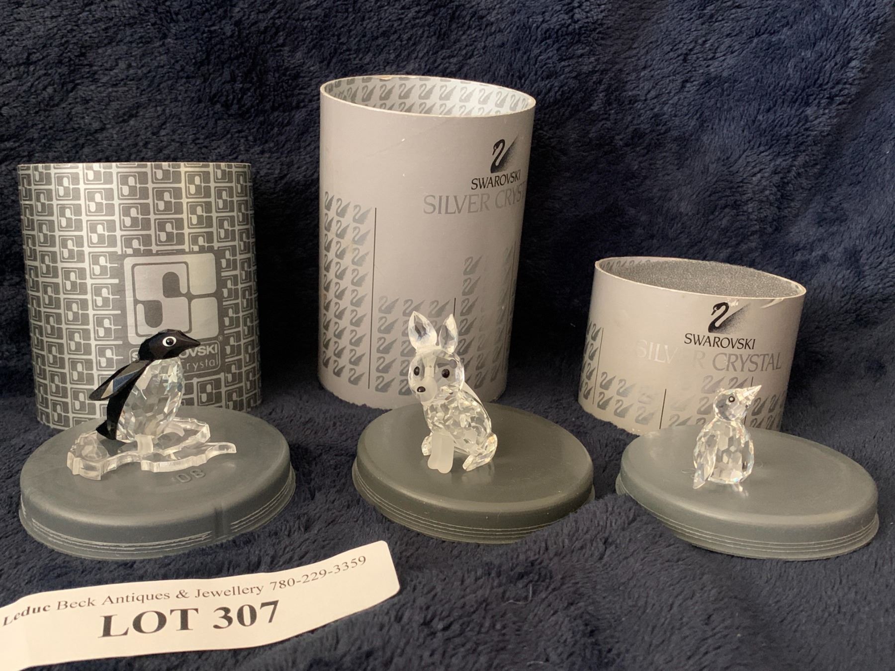 Swarovski Fox 1 3/4 h, Mini Penguin 1 1/4, Madame Penguin w Ice Flow Base 1 1/2 h