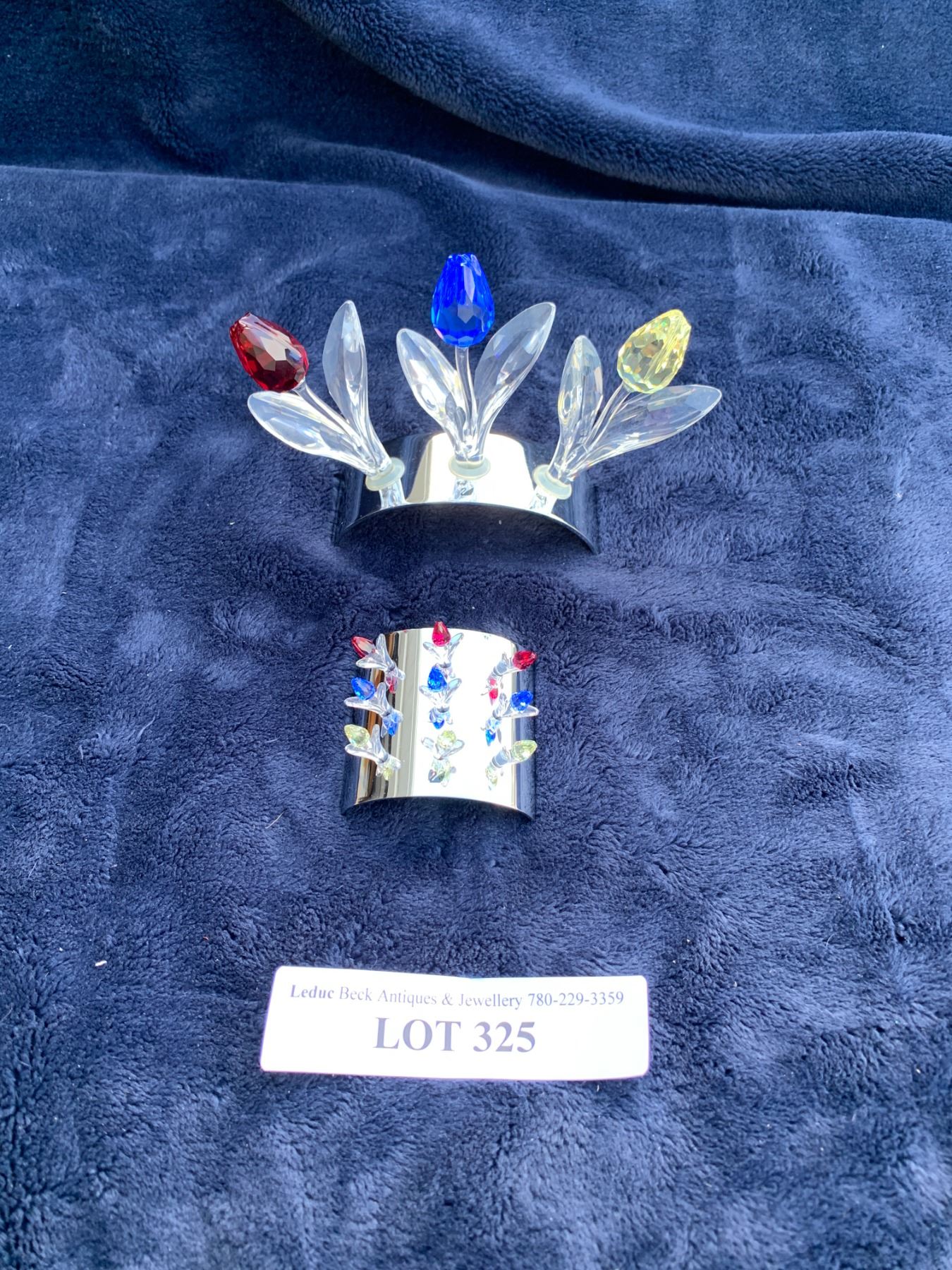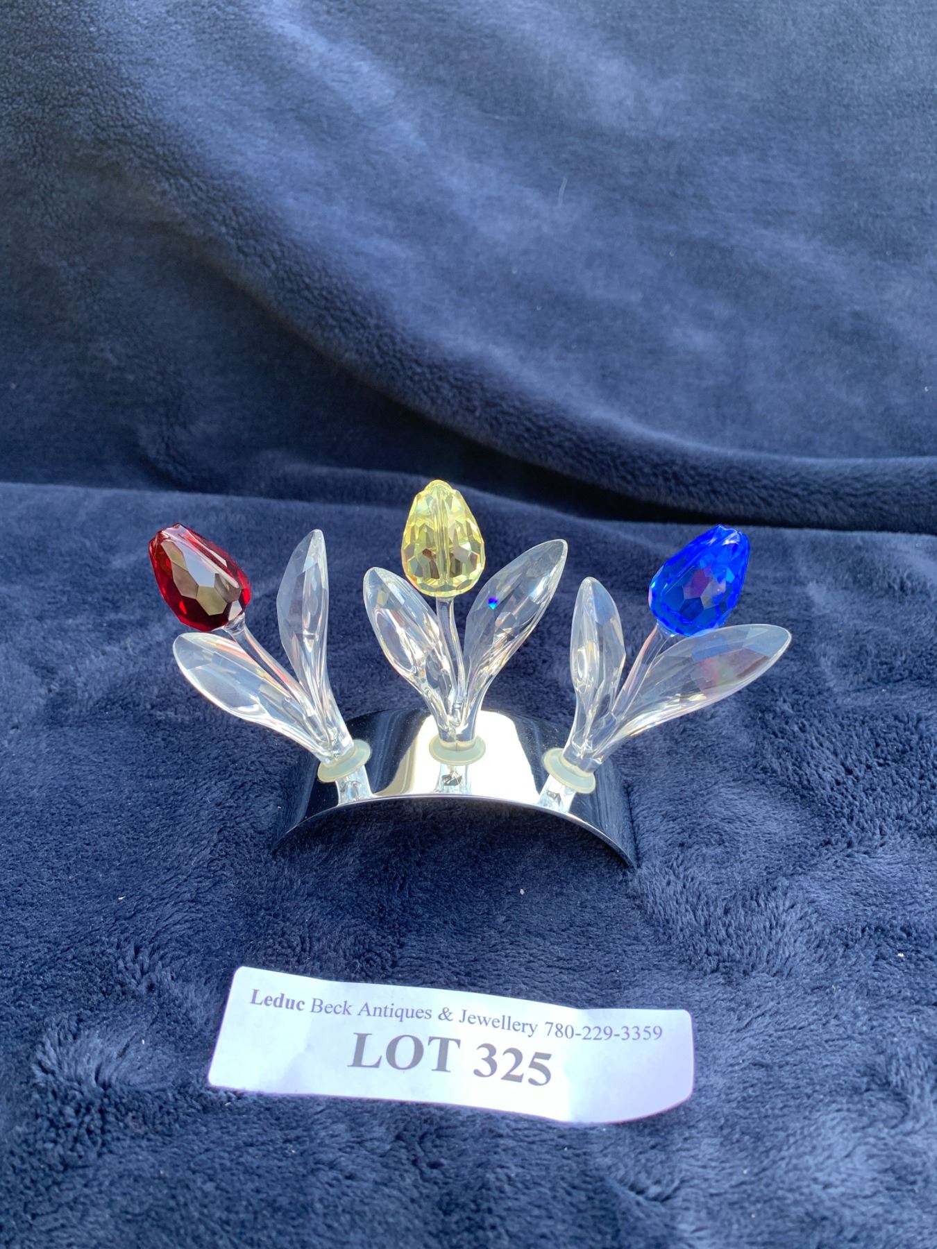 Swarovski SCS Three Crystal Tulips w Stand, Nine Mini Tulips on Stand