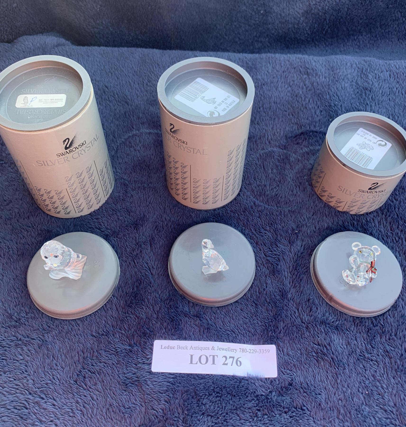 Swarovski Teddy Bear 1 7/8 w, Owl 2 1/4 h & Goose 1 7/8 h