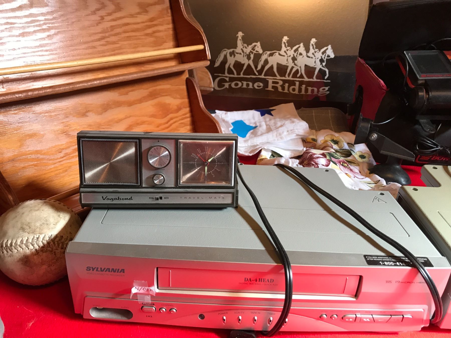 Sylvania & Magnavox VHS Recorders, Vagabond Travel-Mate Clock, Gone Riding Mirror, Wood Plate, Spice