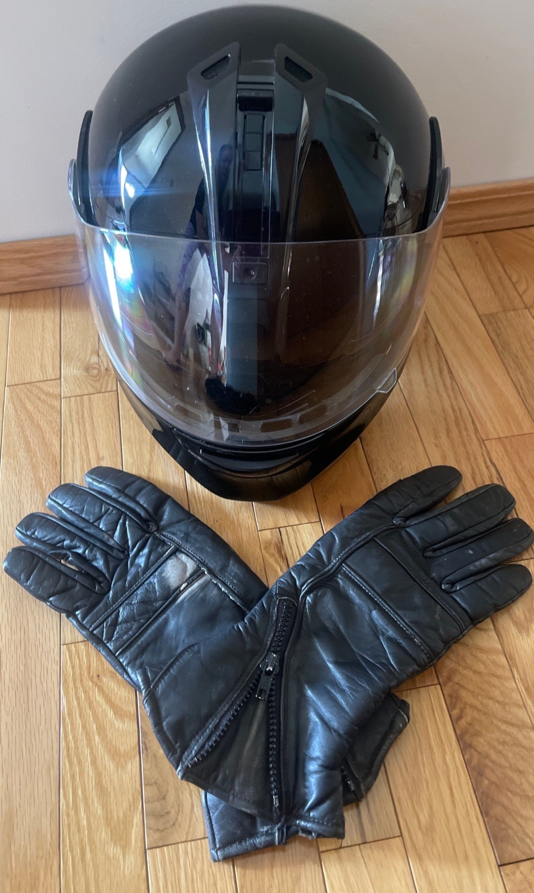 Symax HJIS Motocross Helmet Size Unknown w/ Genuine Leather Gloves