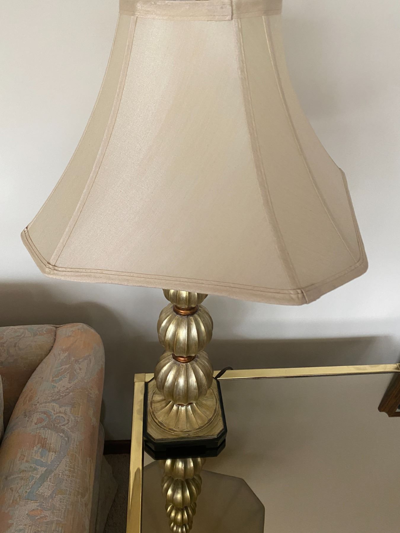 Table Lamp/Shade Size: 34"H & Floor Lamp W/Metal Base Size: 59"H