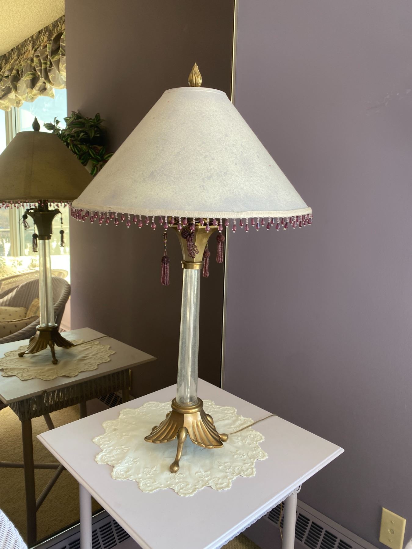 Table Lamp With Beaded Purple Tassles and Brass Base/Fixture's Size: 34"H