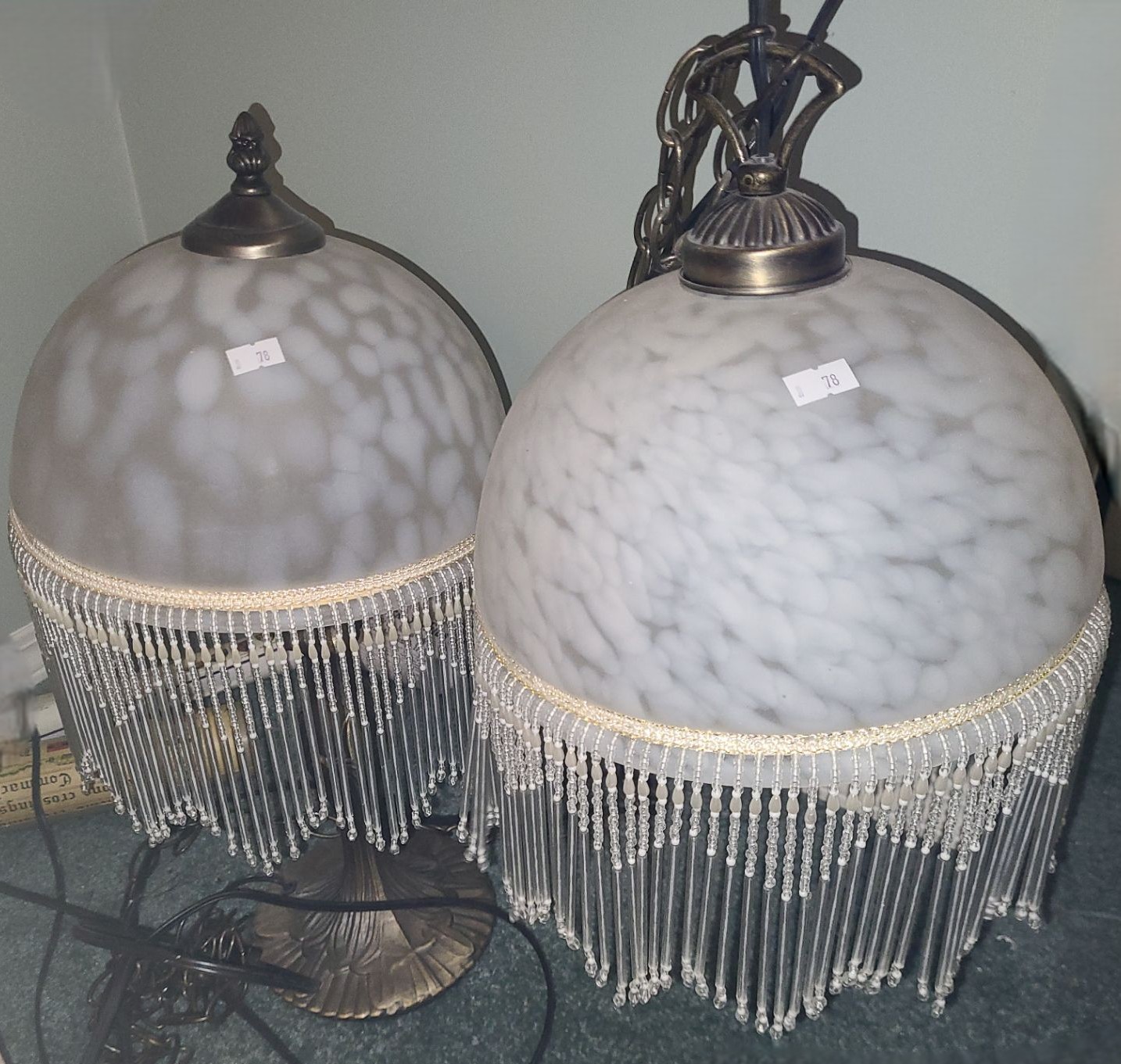 Table Lamp w/ Beaded Glass Shade 20 T, and Hanging Light Fixture 10  Diameter