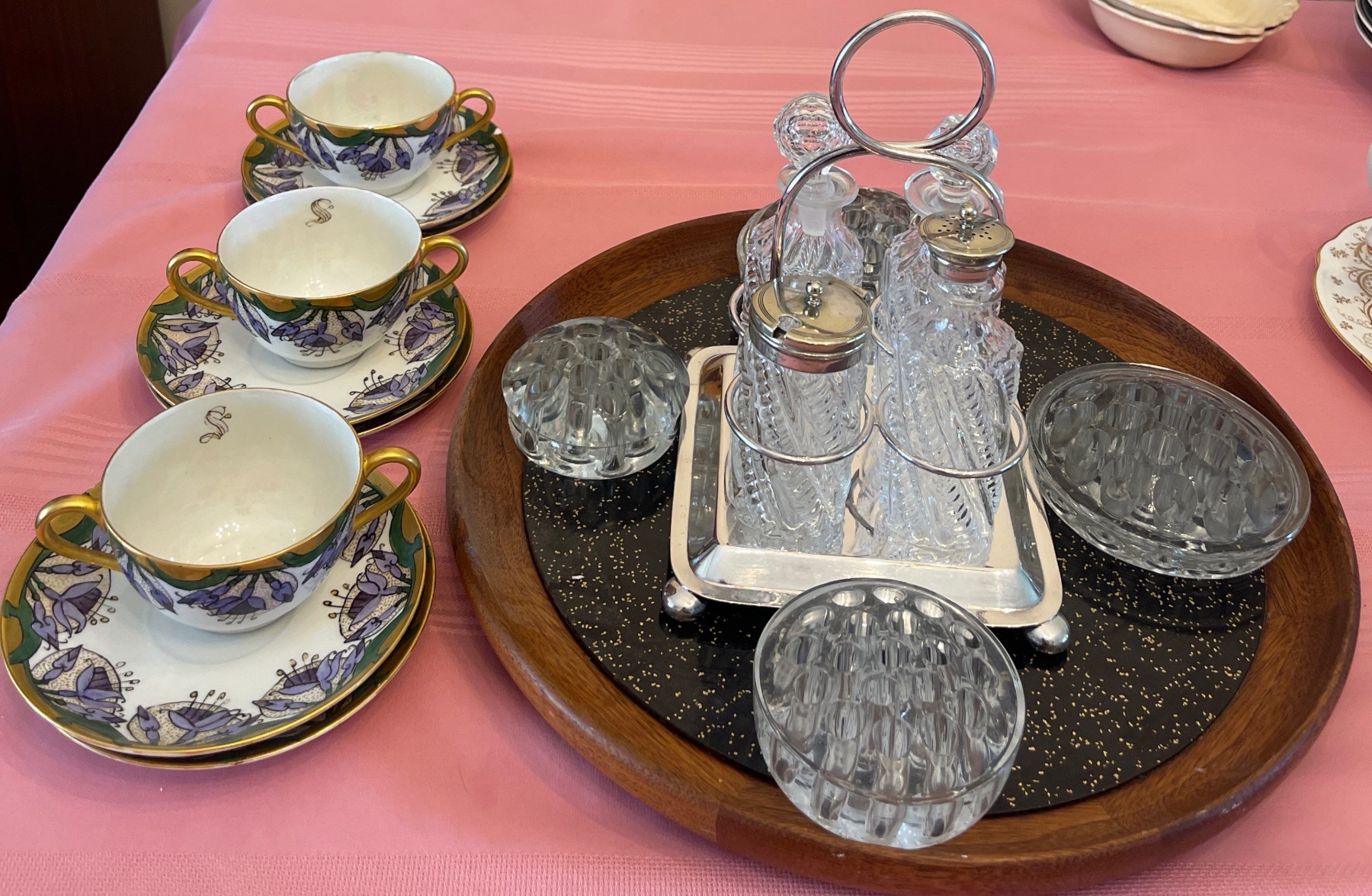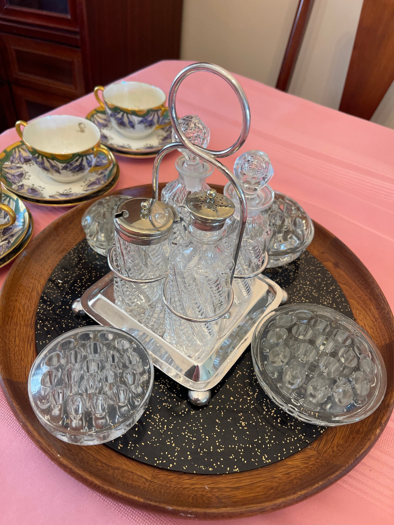 Table Service Essentials - Crystal Salt & Pepper Caddy Frog Dish Tea Cups & More
